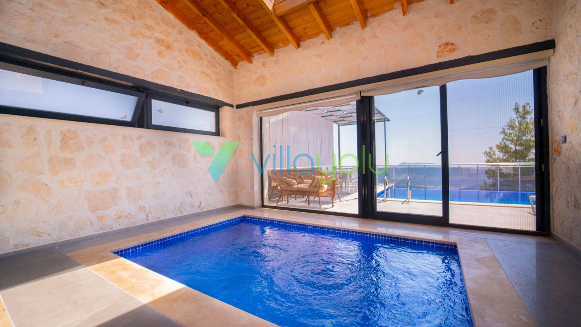 Villa Savaş, Kalkan İslamlar'da havuz alanı korunaklı taş villadır.Villamızın kapalı ısıtma havuzu bulunmaktadır.Tek yatak odalı olan villamız geniş bir bahçeye sahiptir.