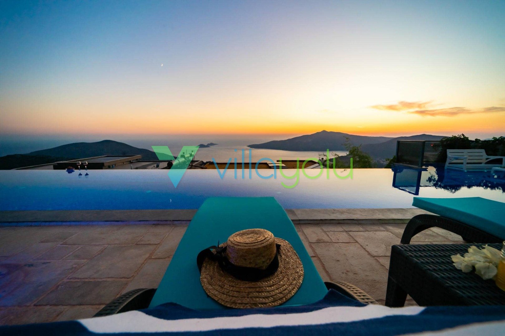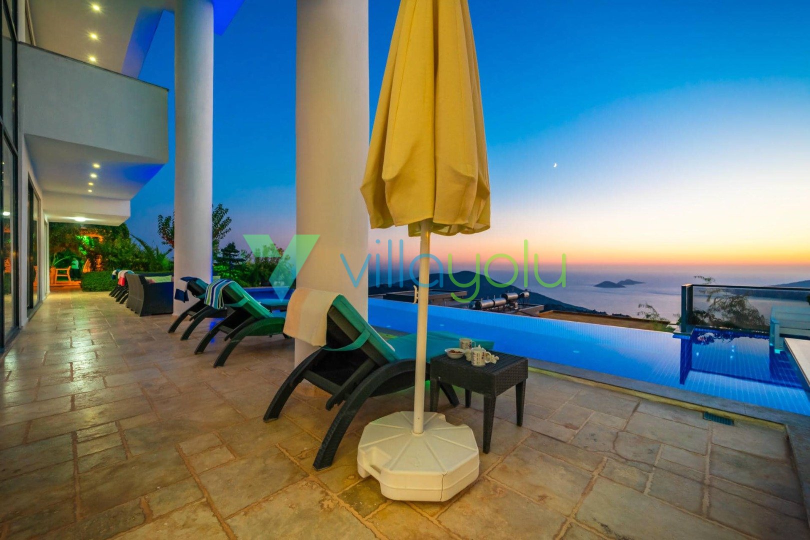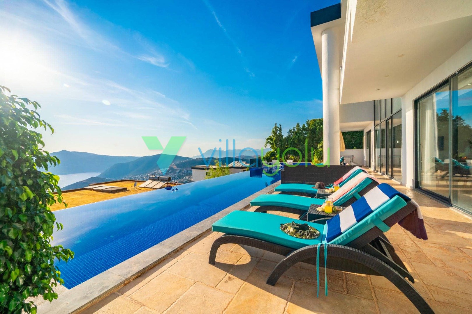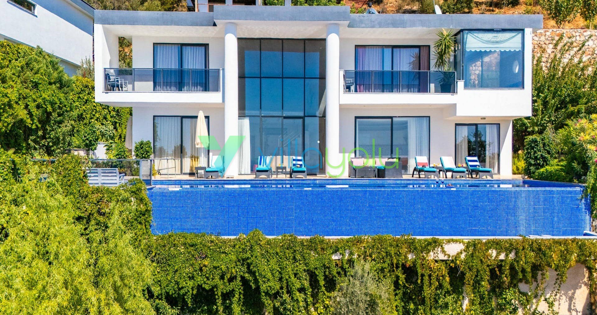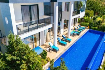Villa Hyperion, Kalkan Kördere'de 4 yatak odası 8 kişi kapasiteli harika deniz manzara özel havuzlu tatil villasıdır. Modern ve lüks tasarıma sahip villamız geniş yeşil bir bahçe ve havuza sahiptir.Ana yatak odasında hamam,sauna ve kış aylarında aktif olan kapalı ısıtmalı havuzu vardır. Bir odamızda ise çift kişilik jakuzi bulunmaktadır.Eğlenceli vakit geçirebilmek için langırt,masa tenisi,salıncaj ve çocuklar için çocuk havuzu ve oyun alanı bulunmaktadır.Kalkan merkeze 3km mesafedeki villamız alışveriş olanaklarına yakın konumdadır.En yakın plaj 4 km mesafededir.