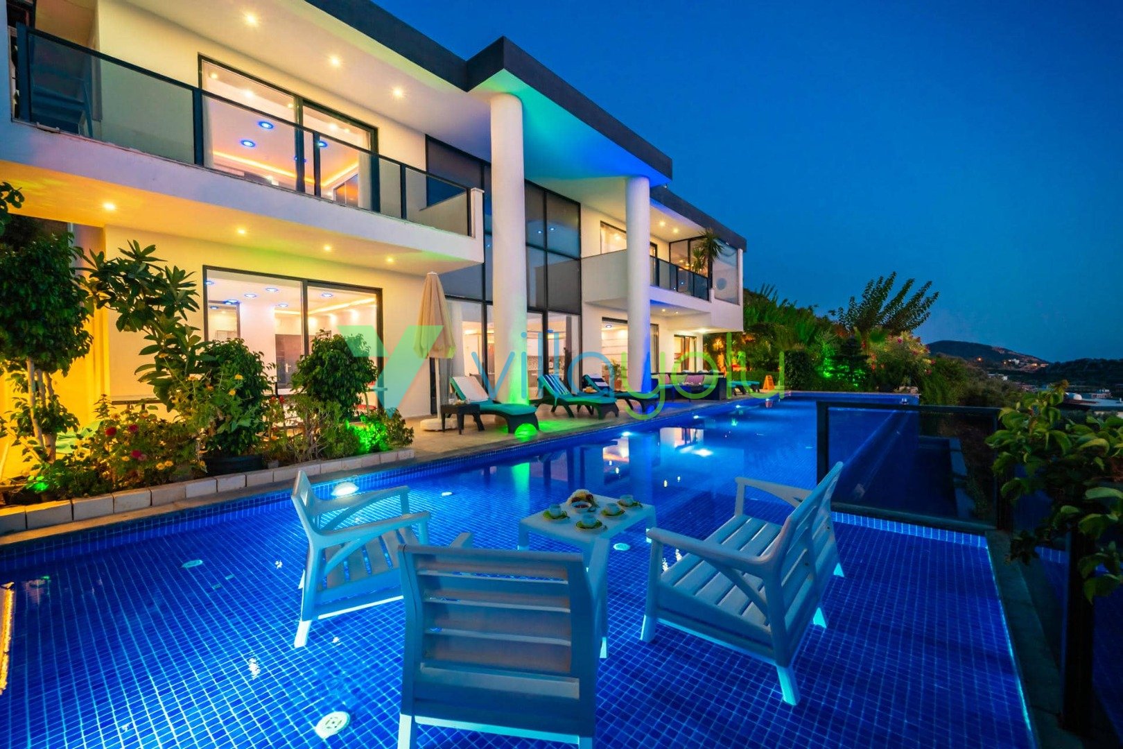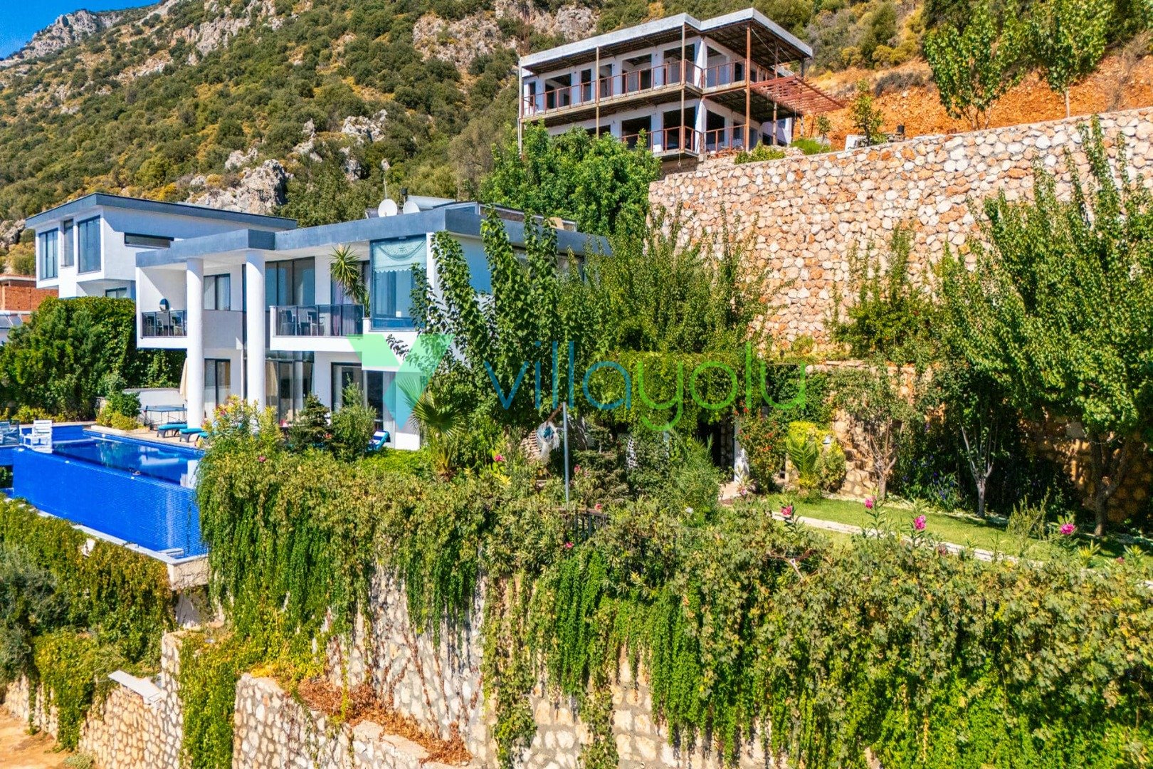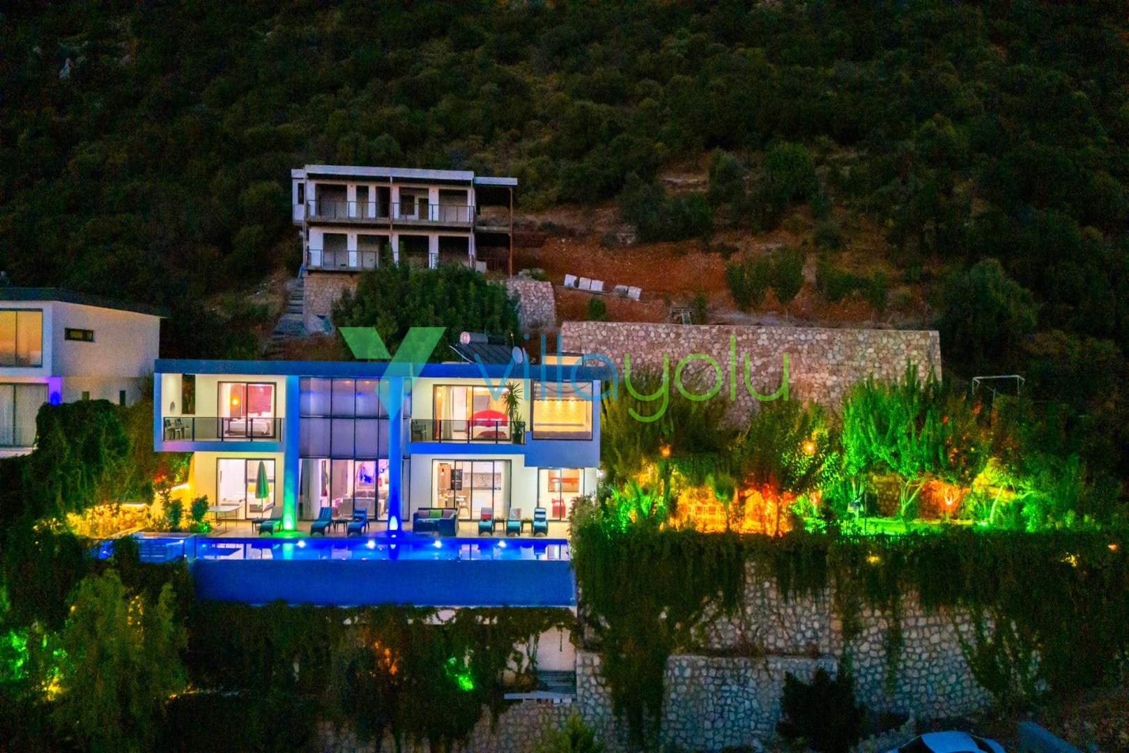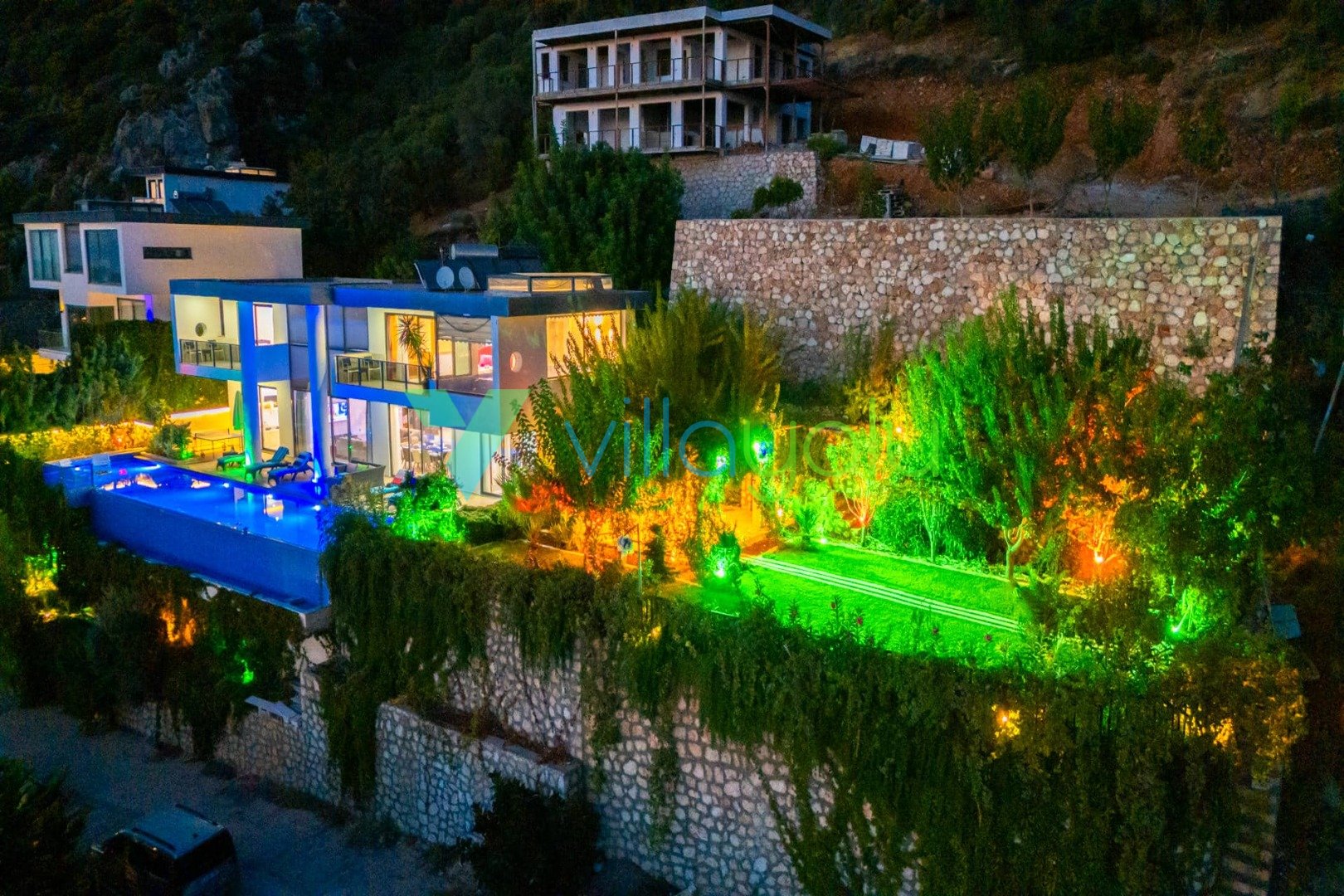 Villa Hyperion, Kalkan Kördere'de 4 yatak odası 8 kişi kapasiteli harika deniz manzara özel havuzlu tatil villasıdır. Modern ve lüks tasarıma sahip villamız geniş yeşil bir bahçe ve havuza sahiptir.Ana yatak odasında hamam,sauna ve kış aylarında aktif olan kapalı ısıtmalı havuzu vardır. Bir odamızda ise çift kişilik jakuzi bulunmaktadır.Eğlenceli vakit geçirebilmek için langırt,masa tenisi,salıncaj ve çocuklar için çocuk havuzu ve oyun alanı bulunmaktadır.Kalkan merkeze 3km mesafedeki villamız alışveriş olanaklarına yakın konumdadır.En yakın plaj 4 km mesafededir.