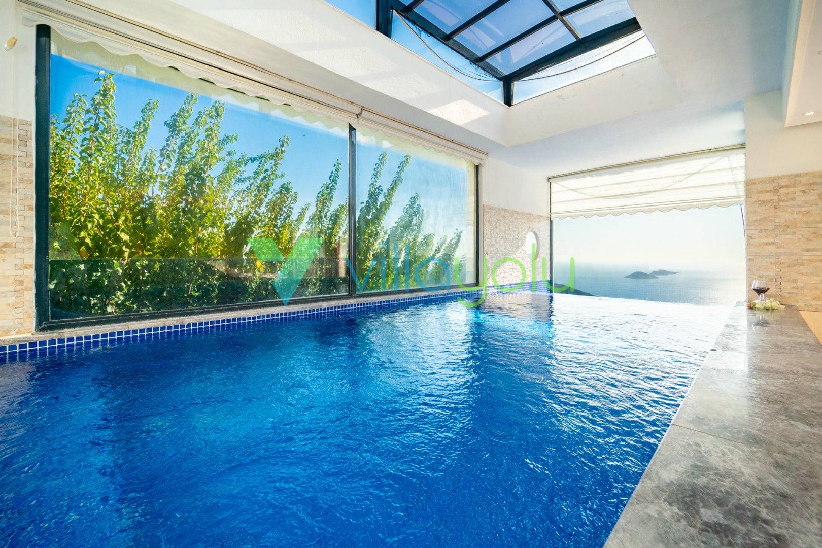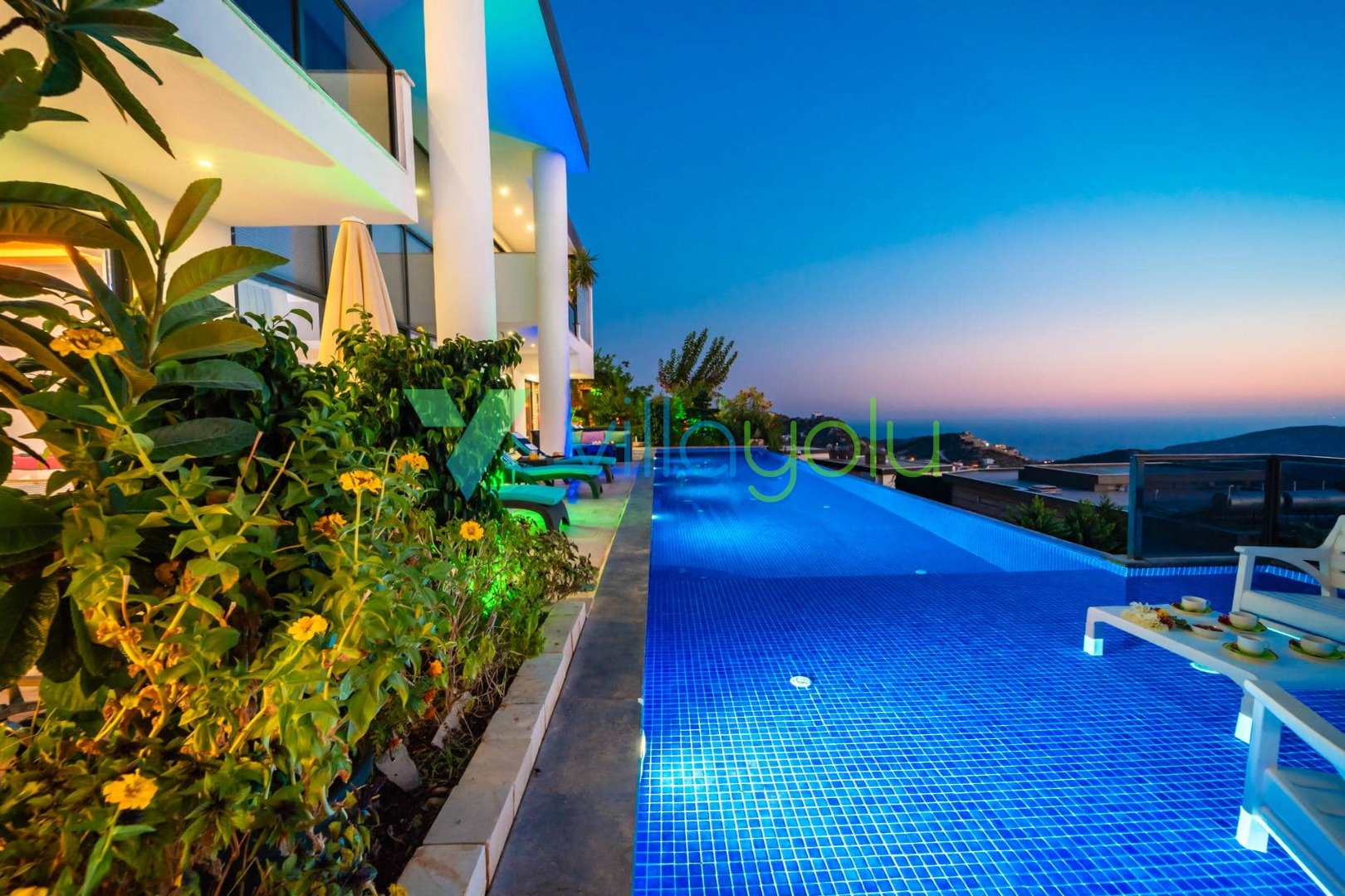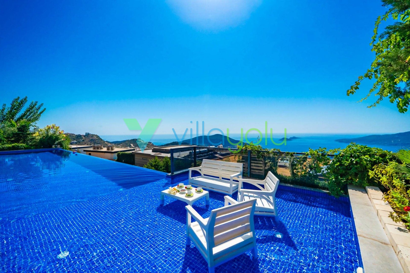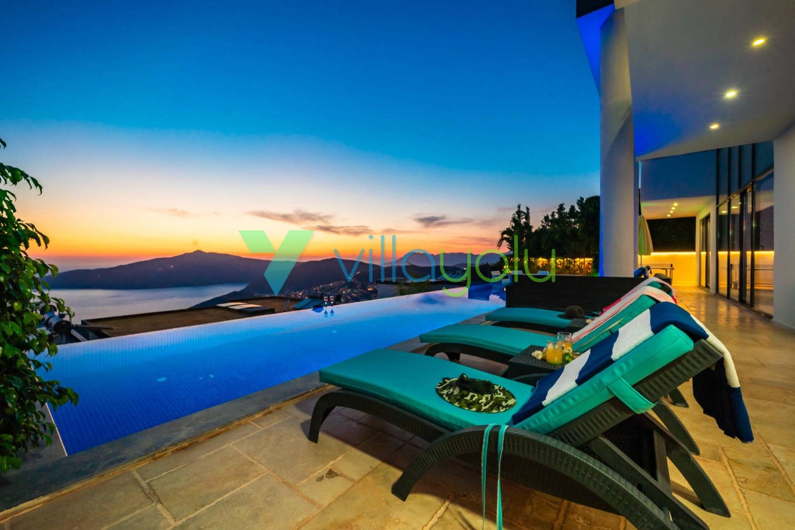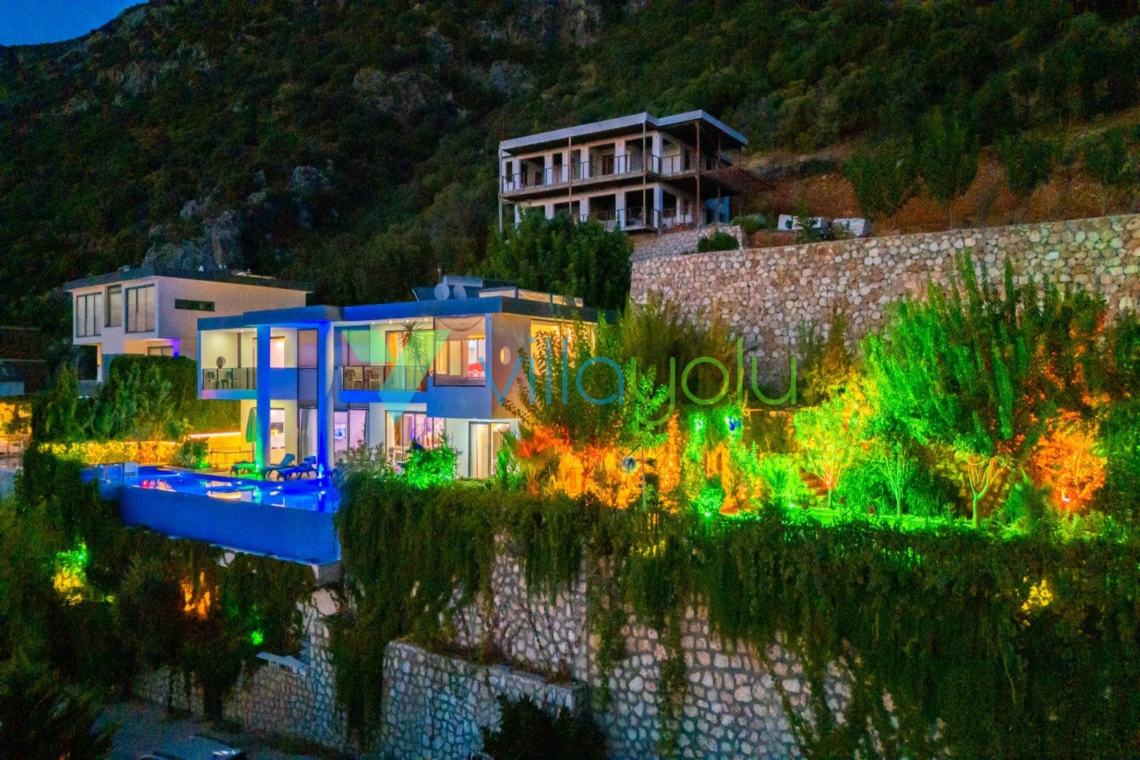 Villa Hyperion, Kalkan Kördere'de 4 yatak odası 8 kişi kapasiteli harika deniz manzara özel havuzlu tatil villasıdır. Modern ve lüks tasarıma sahip villamız geniş yeşil bir bahçe ve havuza sahiptir.Ana yatak odasında hamam,sauna ve kış aylarında aktif olan kapalı ısıtmalı havuzu vardır. Bir odamızda ise çift kişilik jakuzi bulunmaktadır.Eğlenceli vakit geçirebilmek için langırt,masa tenisi,salıncaj ve çocuklar için çocuk havuzu ve oyun alanı bulunmaktadır.Kalkan merkeze 3km mesafedeki villamız alışveriş olanaklarına yakın konumdadır.En yakın plaj 4 km mesafededir.