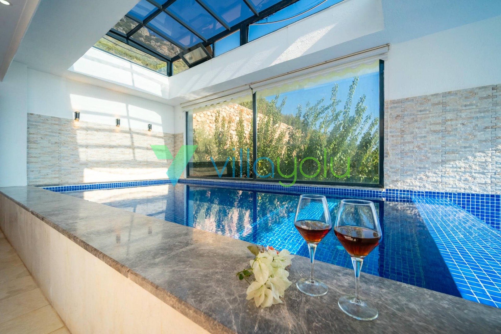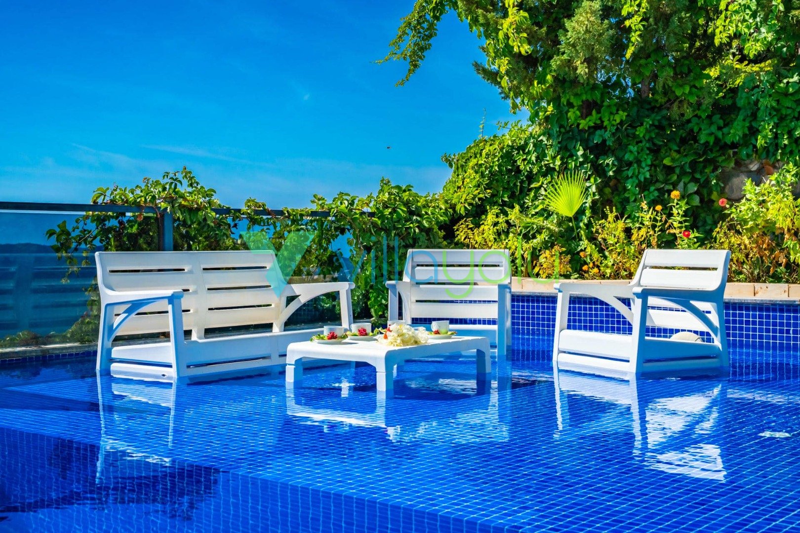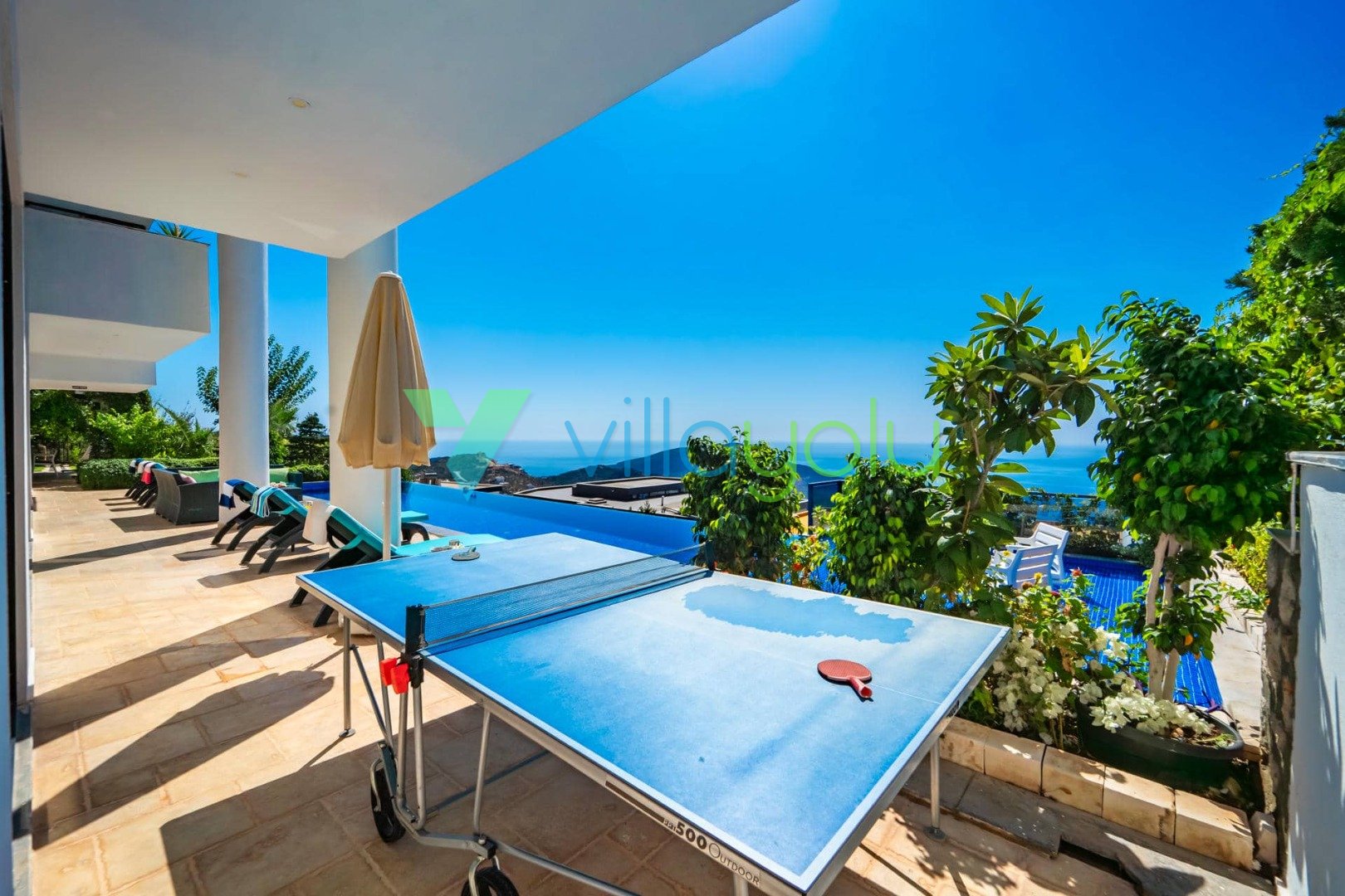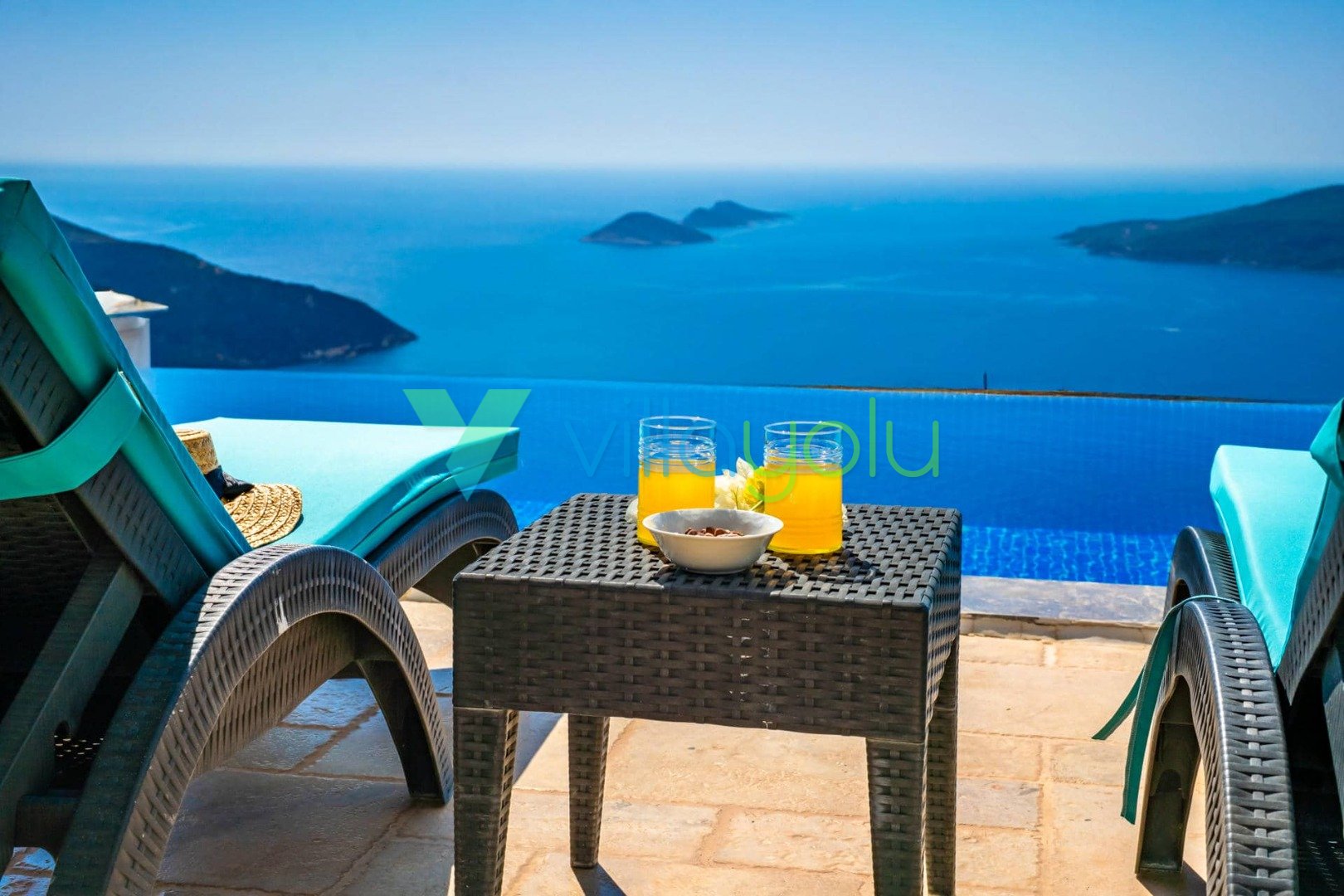 Villa Hyperion, Kalkan Kördere'de 4 yatak odası 8 kişi kapasiteli harika deniz manzara özel havuzlu tatil villasıdır. Modern ve lüks tasarıma sahip villamız geniş yeşil bir bahçe ve havuza sahiptir.Ana yatak odasında hamam,sauna ve kış aylarında aktif olan kapalı ısıtmalı havuzu vardır. Bir odamızda ise çift kişilik jakuzi bulunmaktadır.Eğlenceli vakit geçirebilmek için langırt,masa tenisi,salıncaj ve çocuklar için çocuk havuzu ve oyun alanı bulunmaktadır.Kalkan merkeze 3km mesafedeki villamız alışveriş olanaklarına yakın konumdadır.En yakın plaj 4 km mesafededir.
