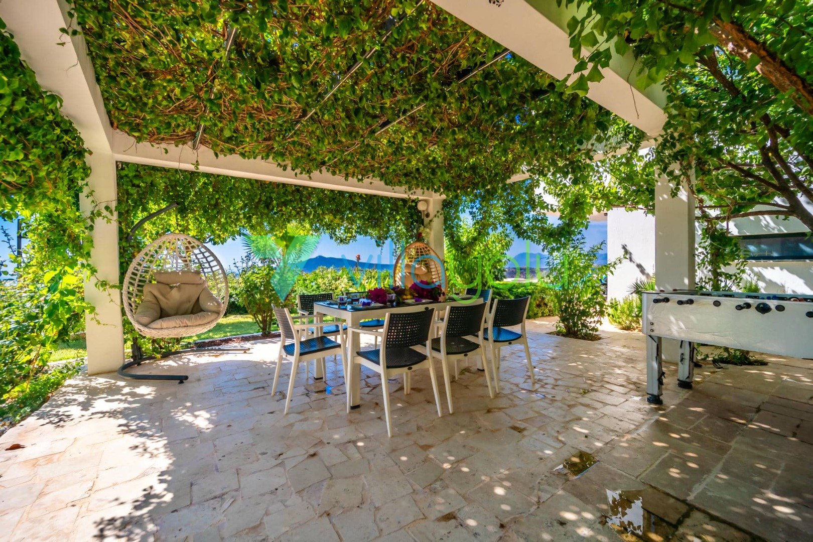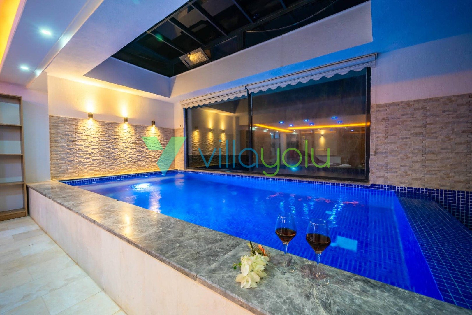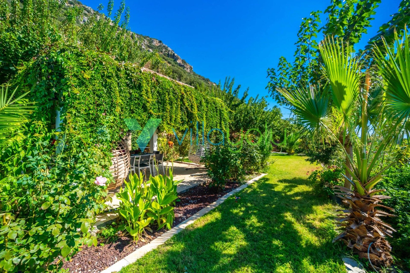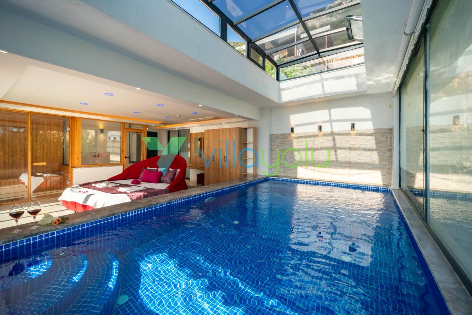 Villa Hyperion, Kalkan Kördere'de 4 yatak odası 8 kişi kapasiteli harika deniz manzara özel havuzlu tatil villasıdır. Modern ve lüks tasarıma sahip villamız geniş yeşil bir bahçe ve havuza sahiptir.Ana yatak odasında hamam,sauna ve kış aylarında aktif olan kapalı ısıtmalı havuzu vardır. Bir odamızda ise çift kişilik jakuzi bulunmaktadır.Eğlenceli vakit geçirebilmek için langırt,masa tenisi,salıncaj ve çocuklar için çocuk havuzu ve oyun alanı bulunmaktadır.Kalkan merkeze 3km mesafedeki villamız alışveriş olanaklarına yakın konumdadır.En yakın plaj 4 km mesafededir.