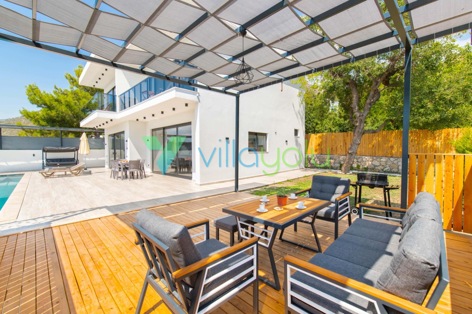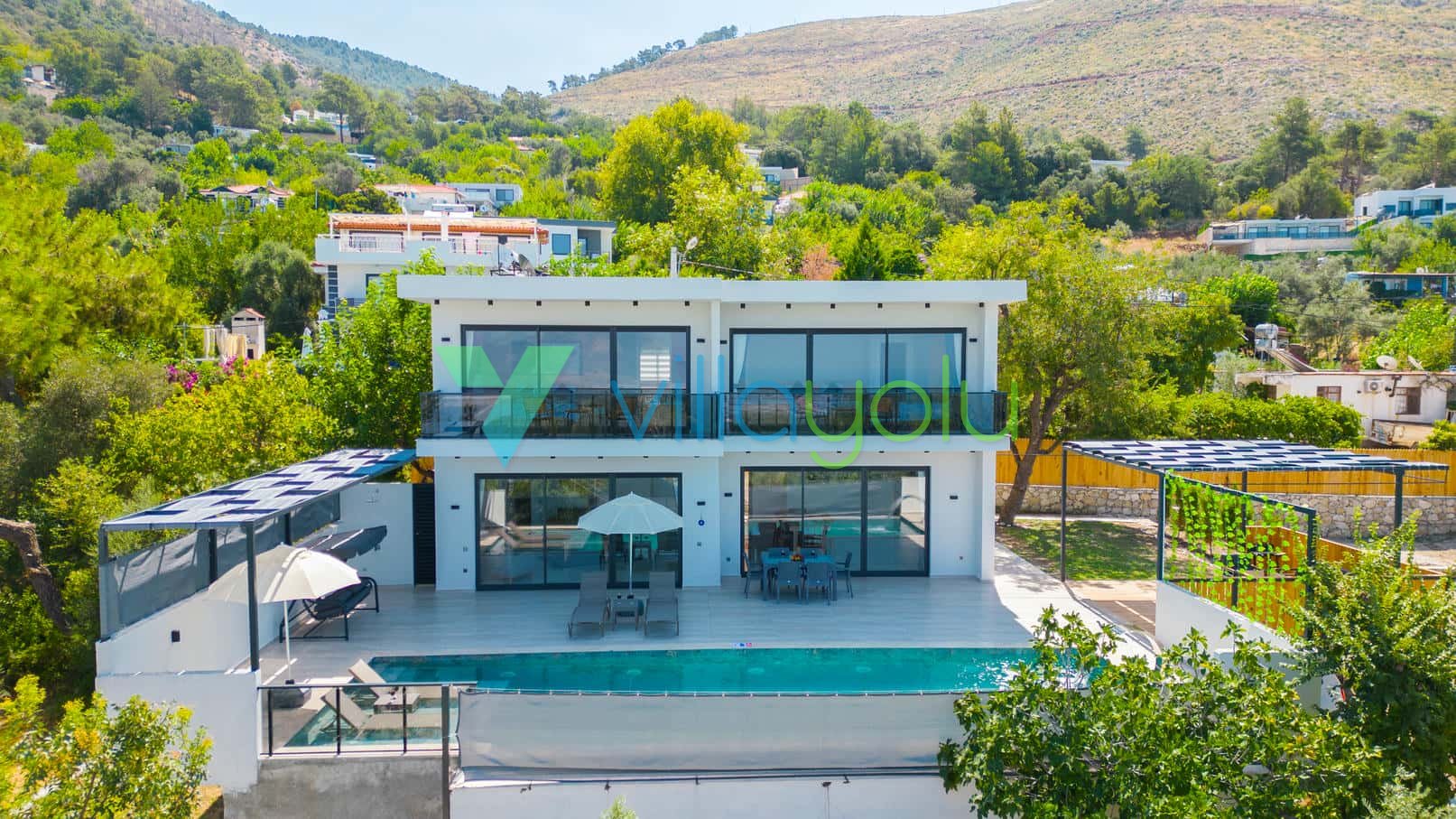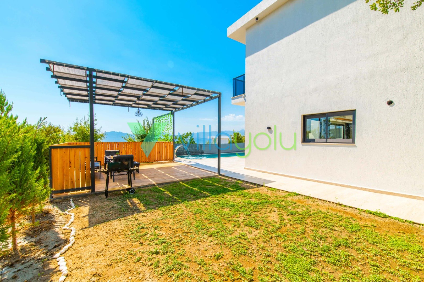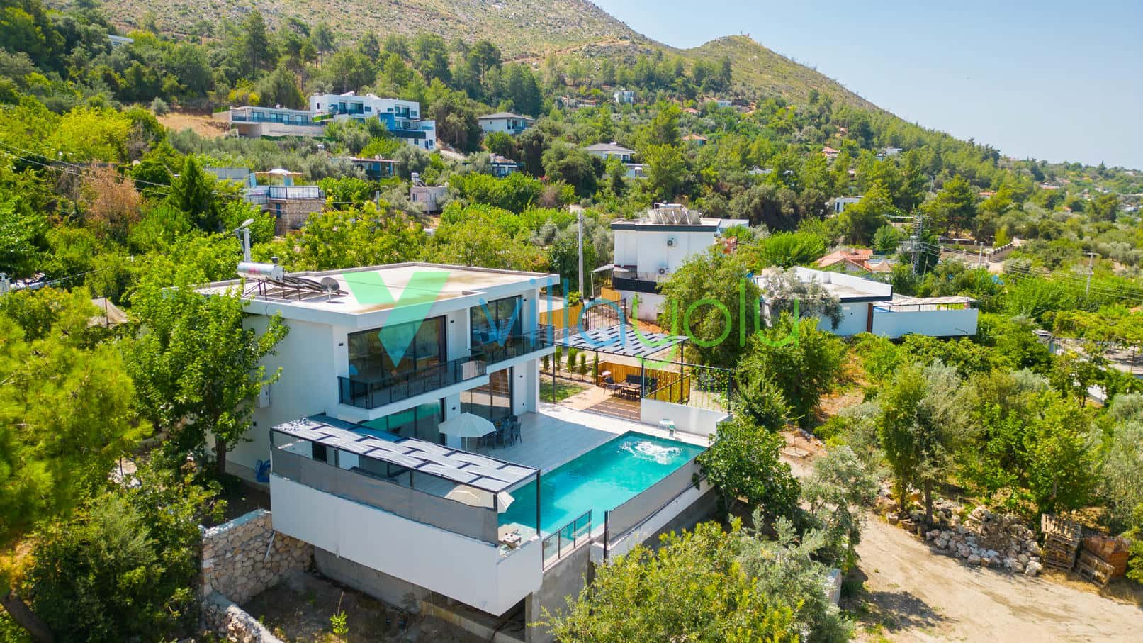 Konfor ve Manzara: Doğa manzarasına hakim olan villamız, uzaktan deniz manzarasıyla da büyülemektedir. Geniş bahçesinde barbekü keyfi yapabilir, havuz başındaki salıncakta gün batımını izleyebilirsiniz. İç mekanda ise modern Amerikan mutfak, konforlu oturma grubu ve tüm ihtiyaçlarınızı karşılayacak beyaz eşyalar (çamaşır makinesi, bulaşık makinesi, fırın vb.) mevcuttur.