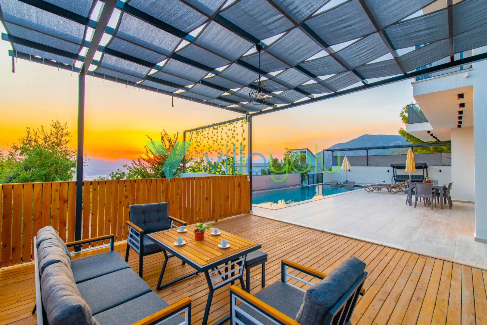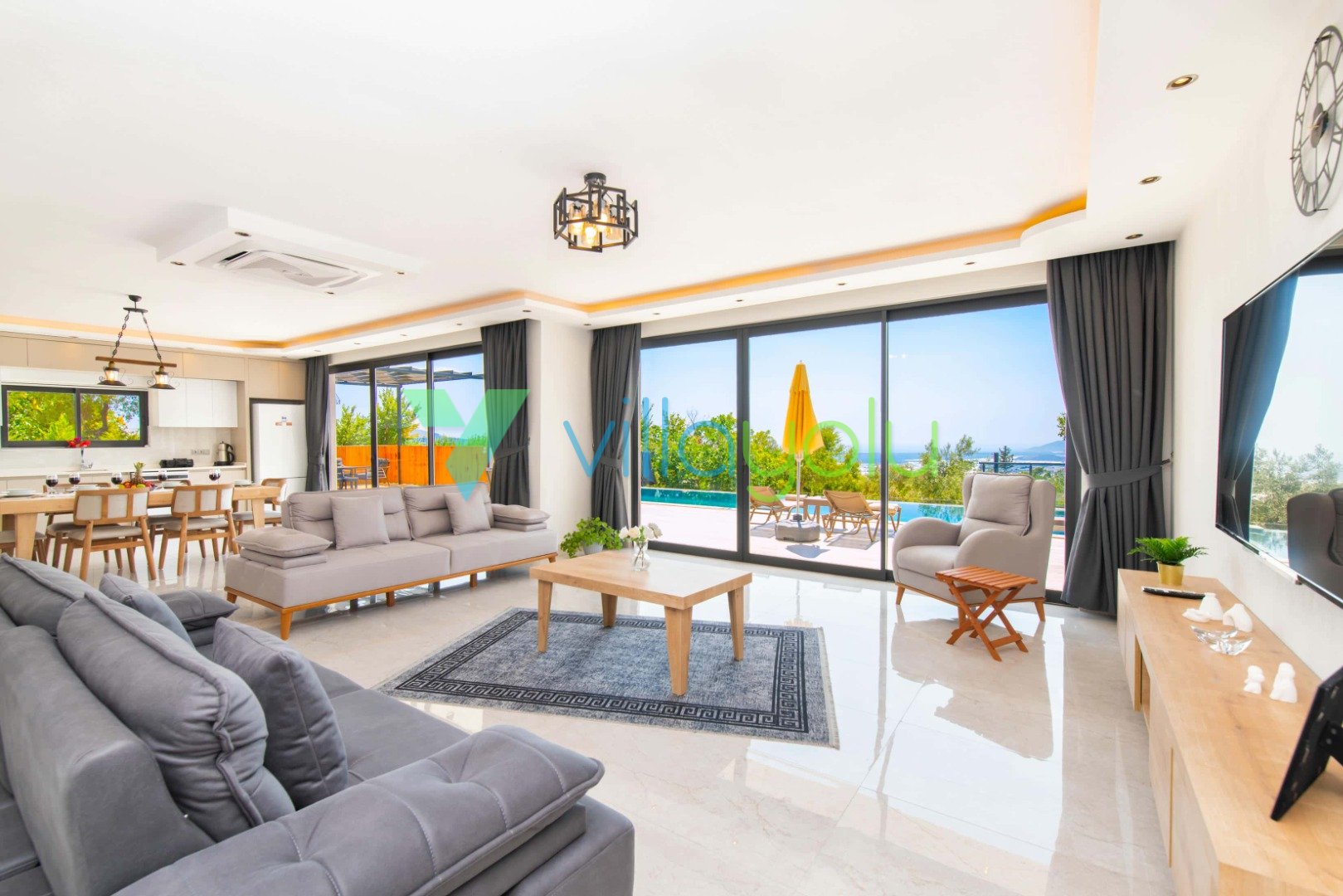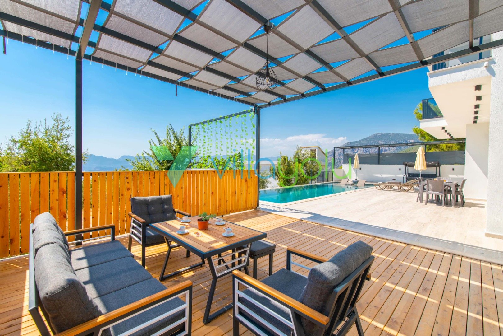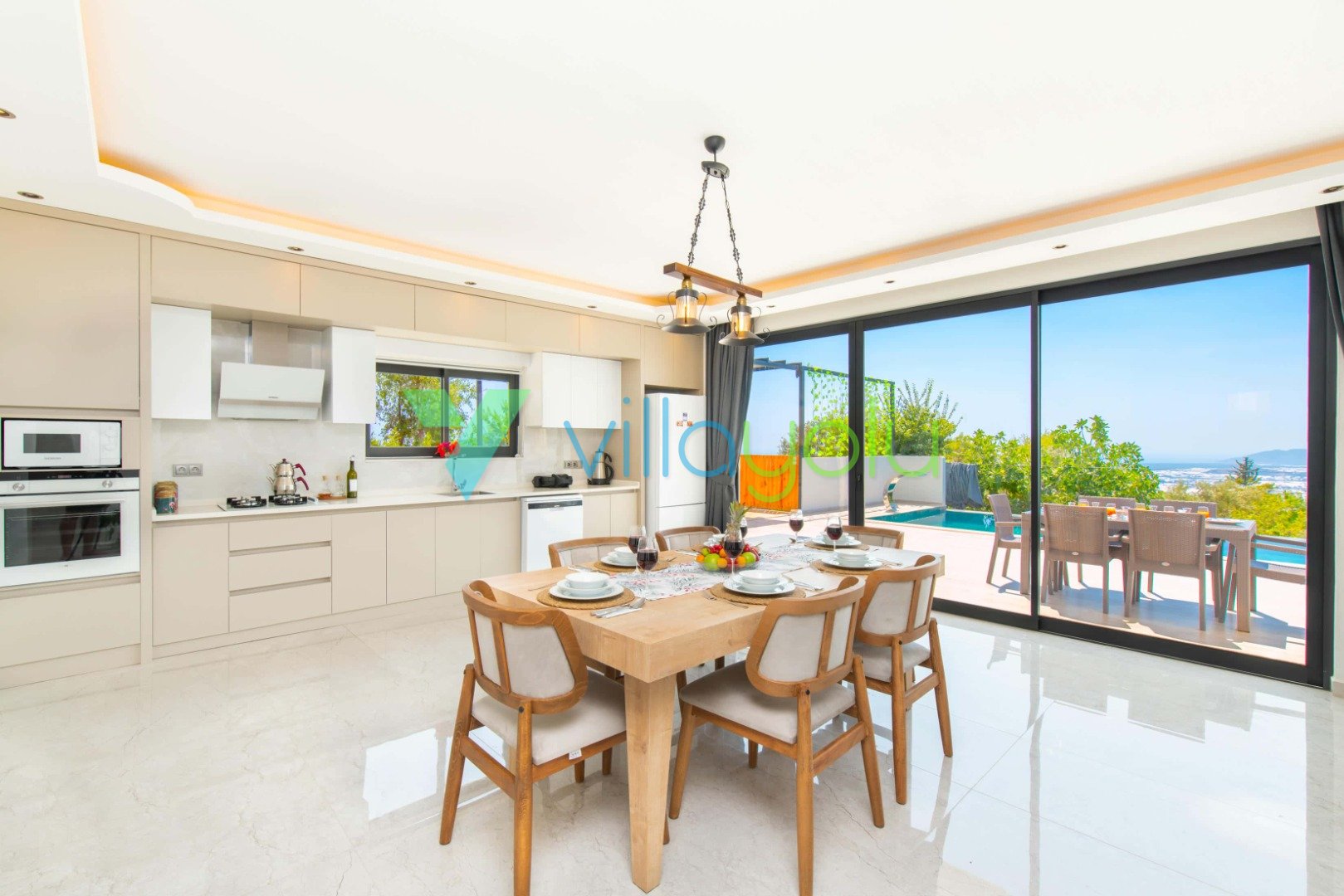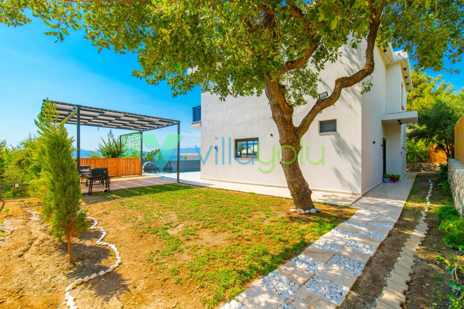 Konfor ve Manzara: Doğa manzarasına hakim olan villamız, uzaktan deniz manzarasıyla da büyülemektedir. Geniş bahçesinde barbekü keyfi yapabilir, havuz başındaki salıncakta gün batımını izleyebilirsiniz. İç mekanda ise modern Amerikan mutfak, konforlu oturma grubu ve tüm ihtiyaçlarınızı karşılayacak beyaz eşyalar (çamaşır makinesi, bulaşık makinesi, fırın vb.) mevcuttur.