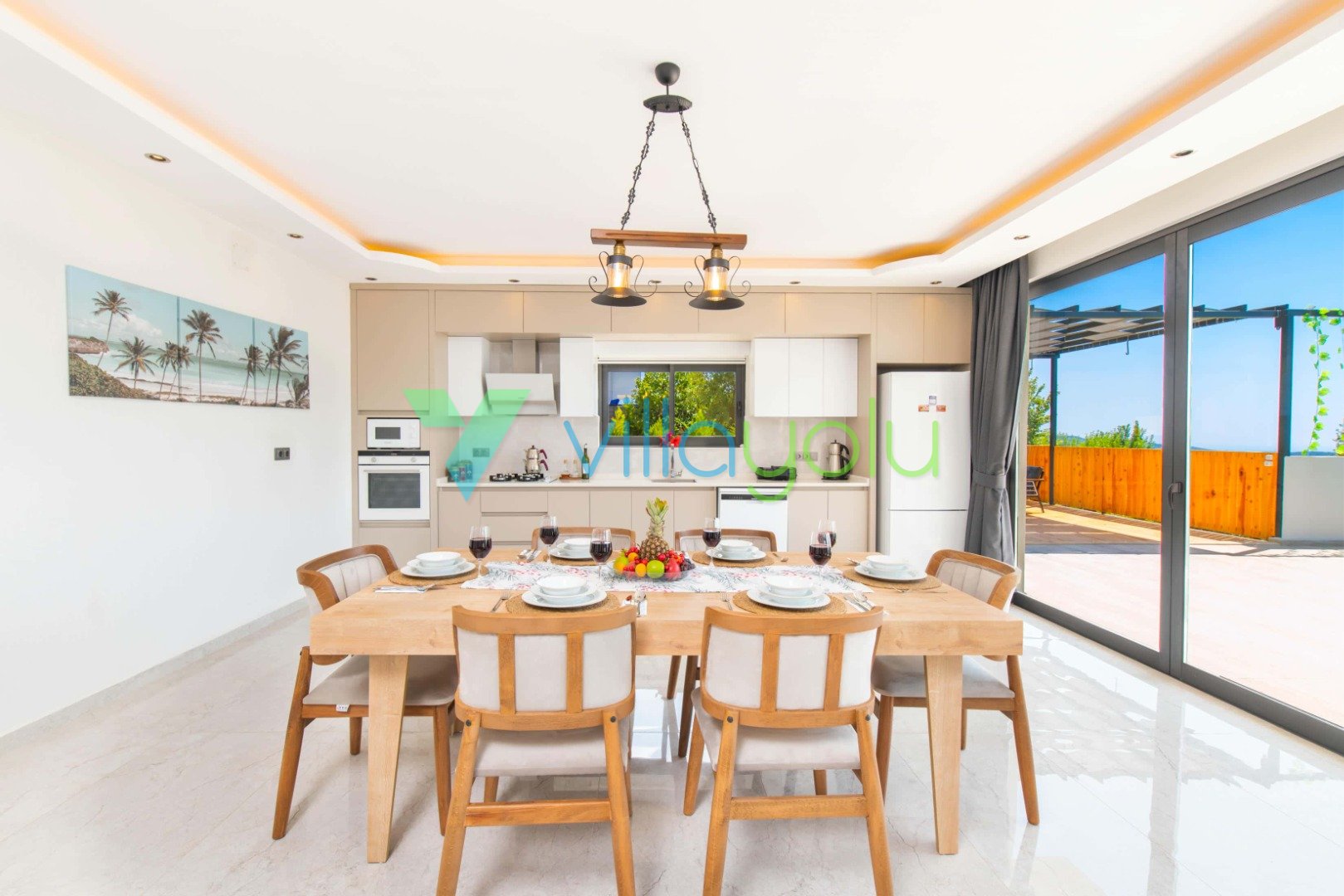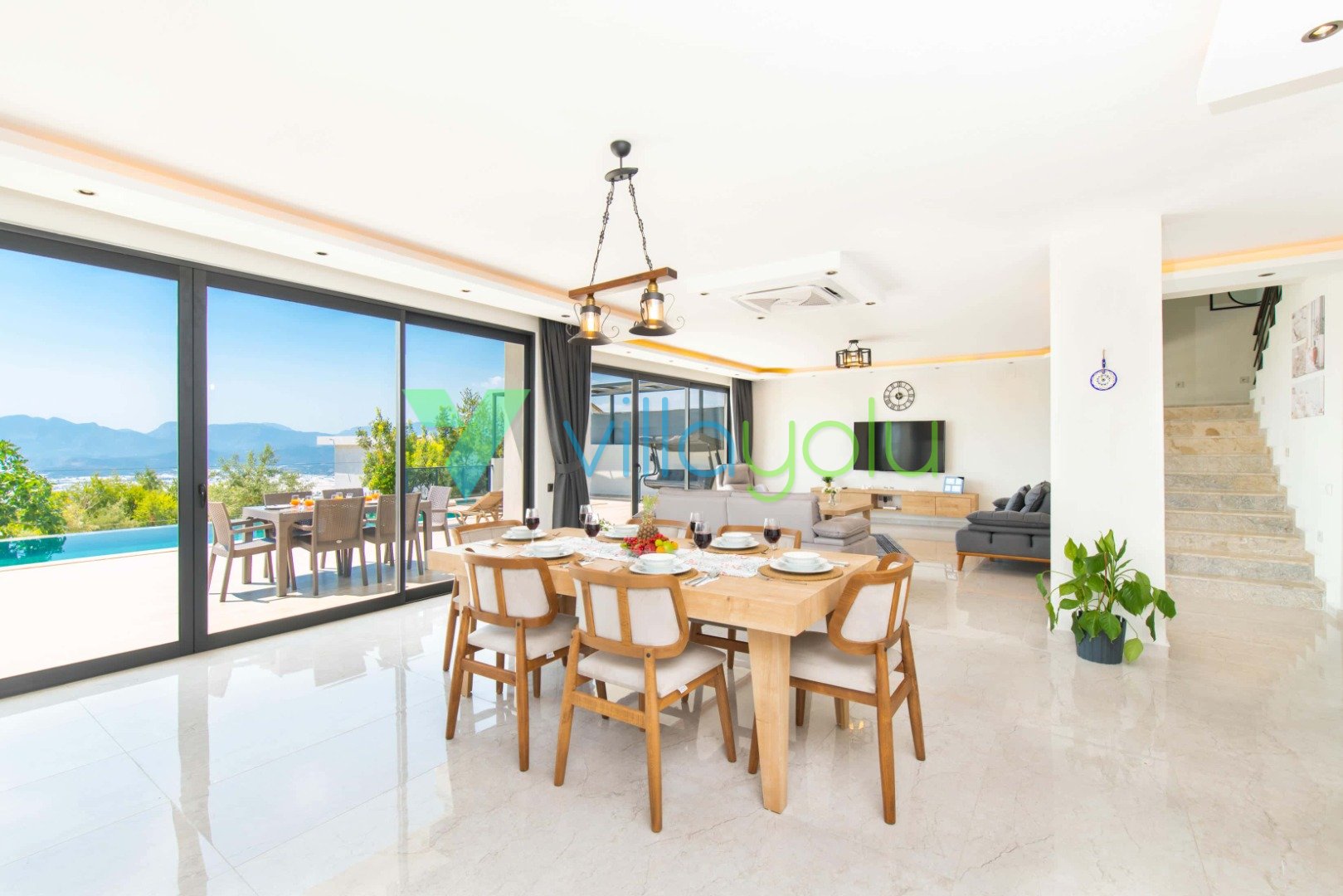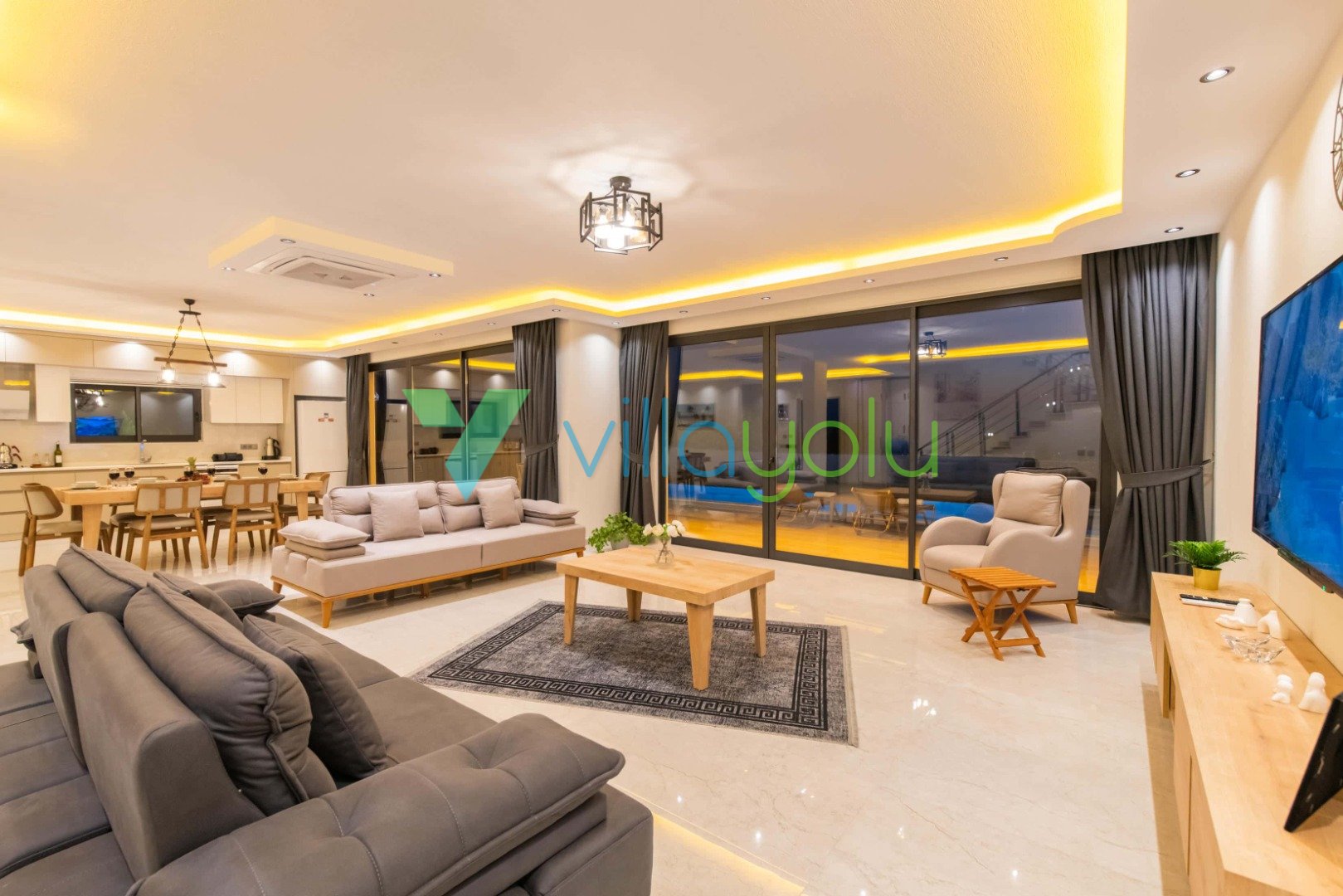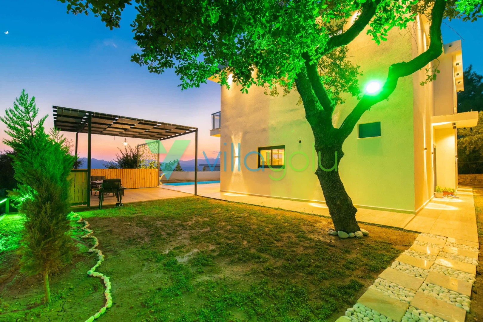 Konfor ve Manzara: Doğa manzarasına hakim olan villamız, uzaktan deniz manzarasıyla da büyülemektedir. Geniş bahçesinde barbekü keyfi yapabilir, havuz başındaki salıncakta gün batımını izleyebilirsiniz. İç mekanda ise modern Amerikan mutfak, konforlu oturma grubu ve tüm ihtiyaçlarınızı karşılayacak beyaz eşyalar (çamaşır makinesi, bulaşık makinesi, fırın vb.) mevcuttur.