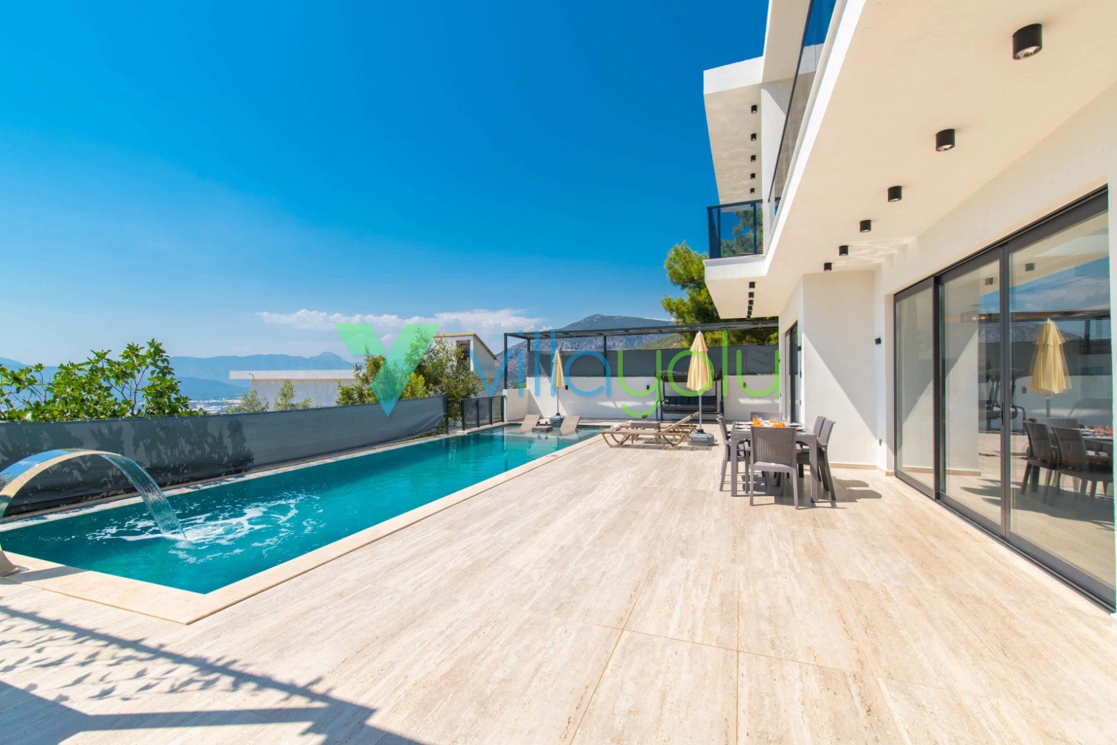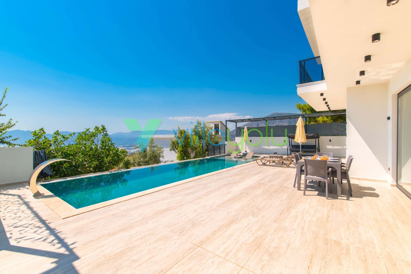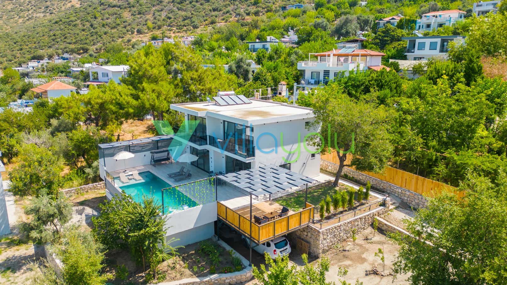 Kalkan’ın eşsiz doğasıyla çevrili Üzümlü Köyü’nde yer alan Villa Kaila, modern mimarisi ve lüks donanımları ile unutulmaz bir tatil deneyimi sunuyor. Şehrin gürültüsünden uzak, yeşillikler içinde huzurlu bir mola vermek isteyen misafirlerimiz için özenle tasarlanmıştır.