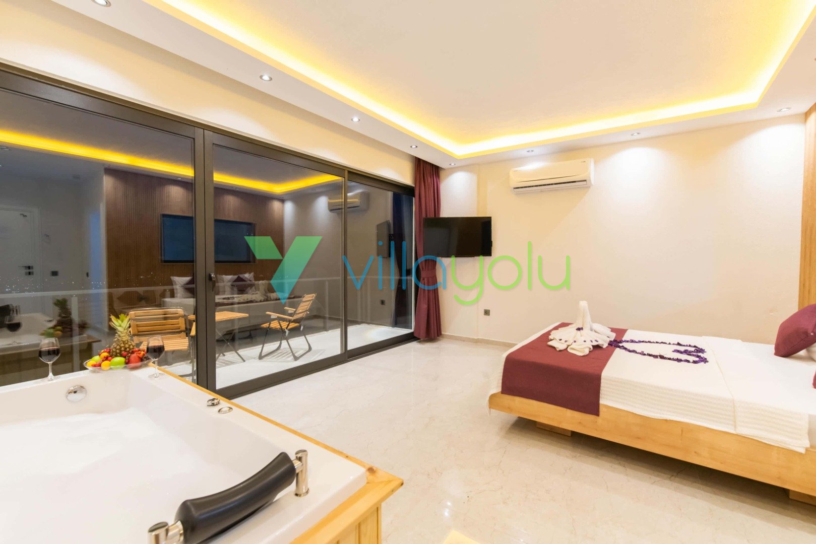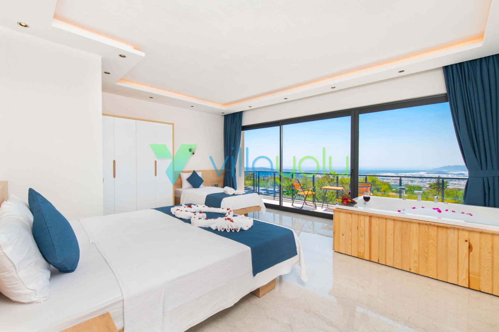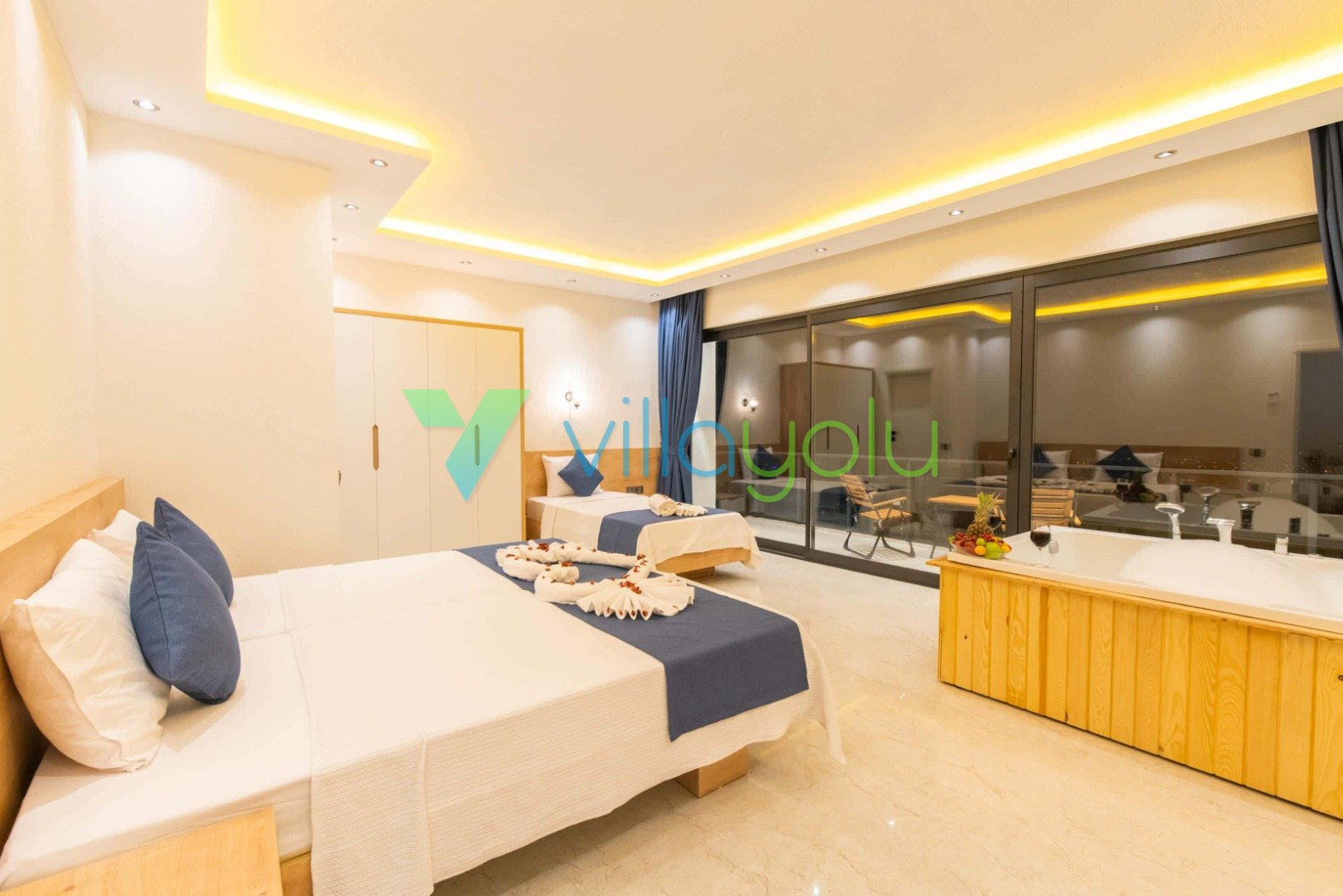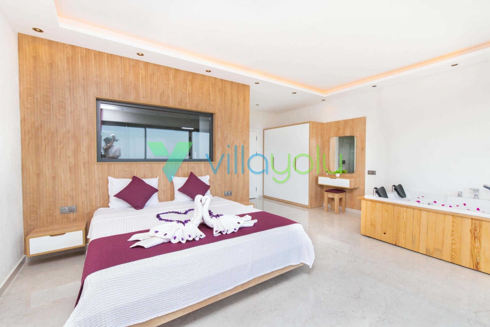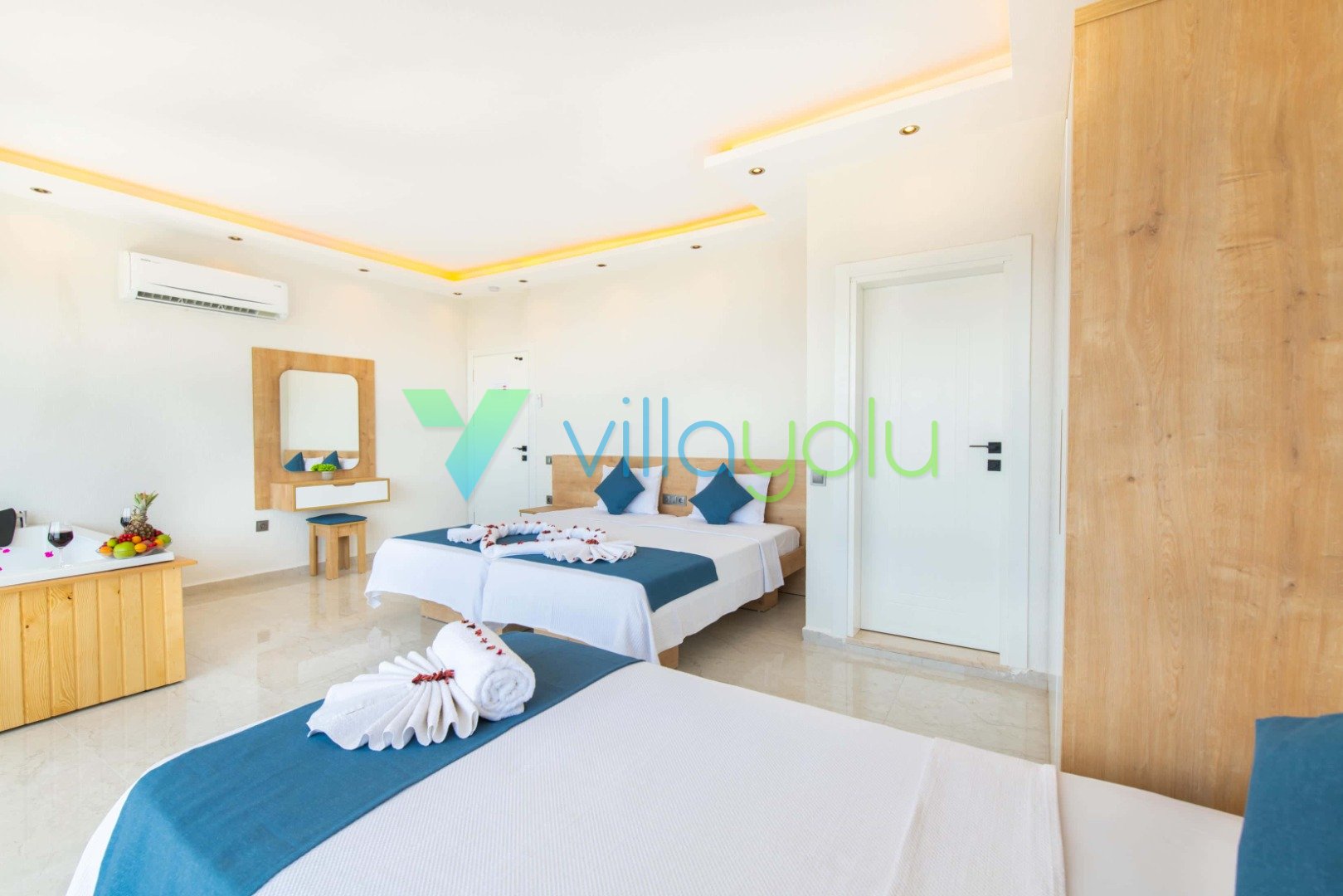 2. Yatak Odası (Genç/Çocuk): 1 Çift Kişilik + 1 Tek Kişilik Yatak , Klima, Elbise Dolabı, Jakuzi, Banyo/WC.