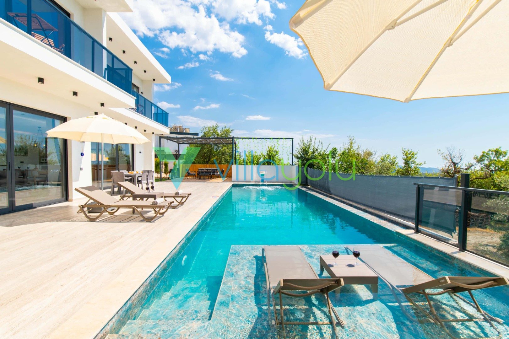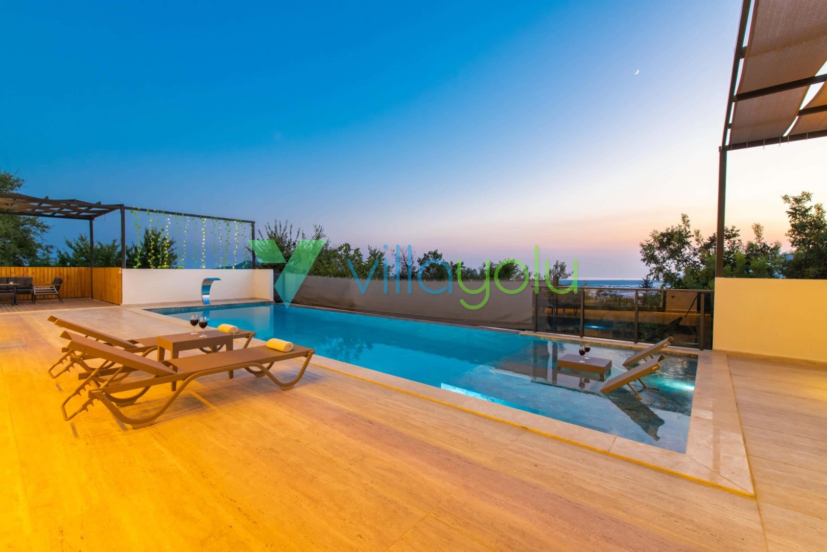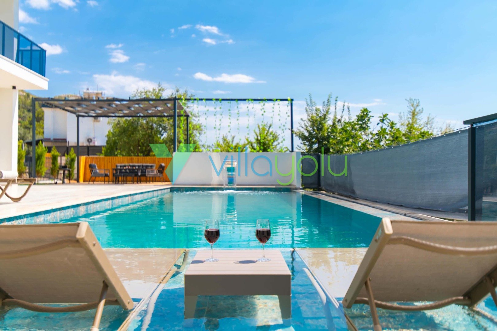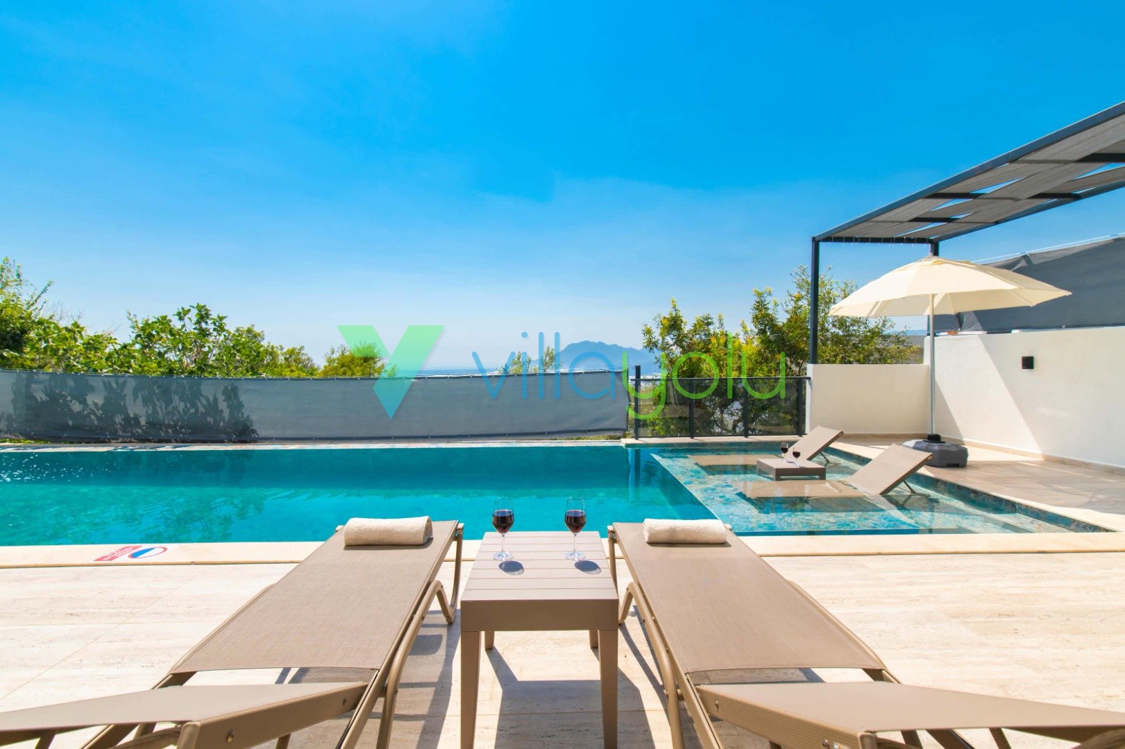 Muhafazakar ve Korunaklı Havuz Keyfi: Villamızın havuz terası dışarıdan görünmeyecek şekilde tasarlanmıştır. Bu sayede mahremiyetine önem veren muhafazakar aileler ve gözlerden uzak romantik bir tatil geçirmek isteyen balayı çiftleri için mükemmel bir seçenektir. 12.5 metre uzunluğundaki geniş yüzme havuzunda günün tadını çıkarabilir, sığ havuz bölümünde çocuklarınızla güvenle vakit geçirebilirsiniz.