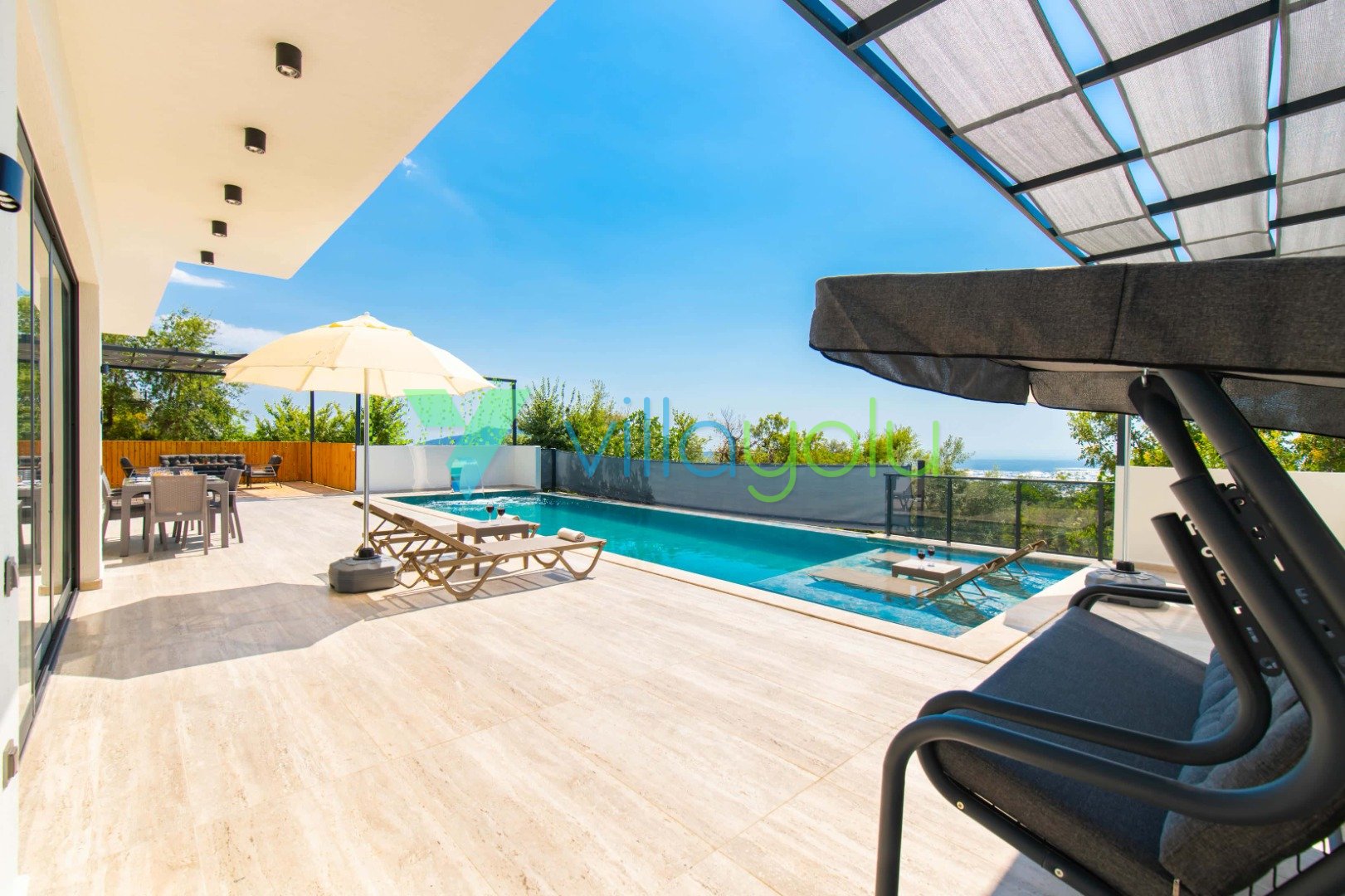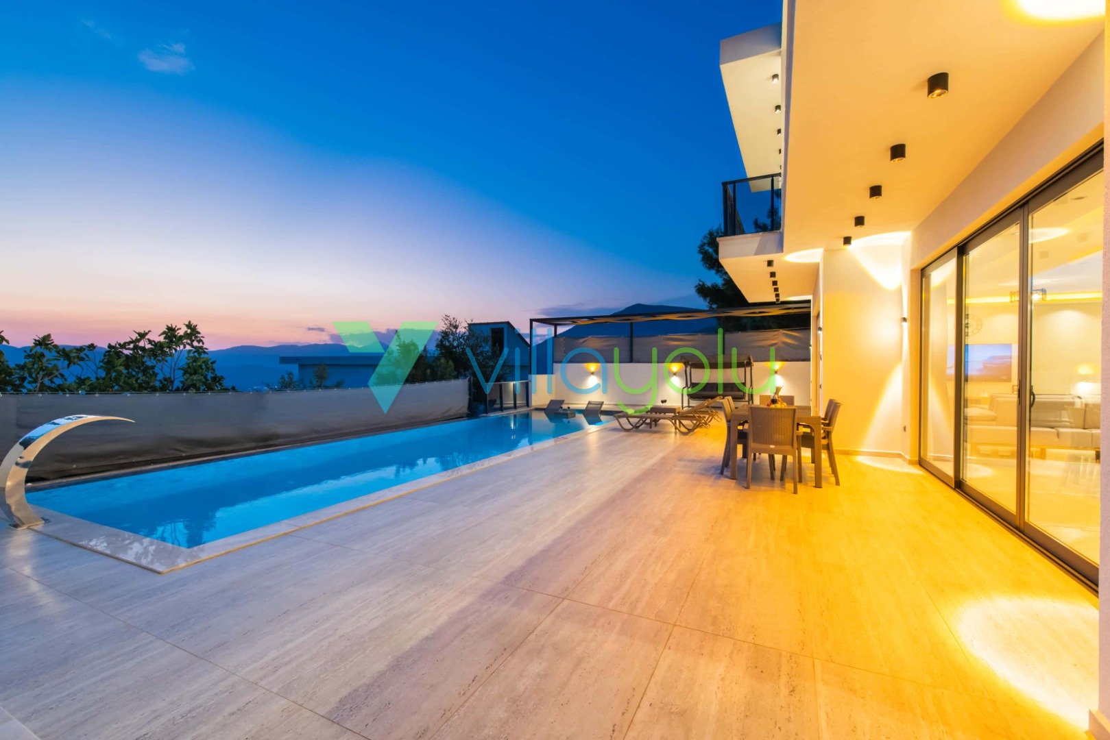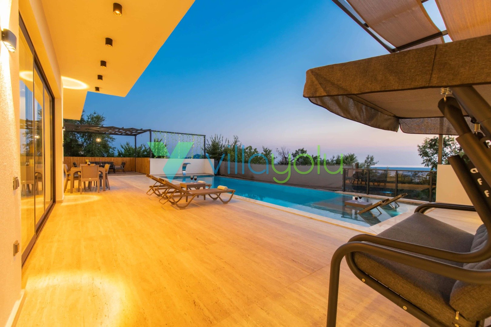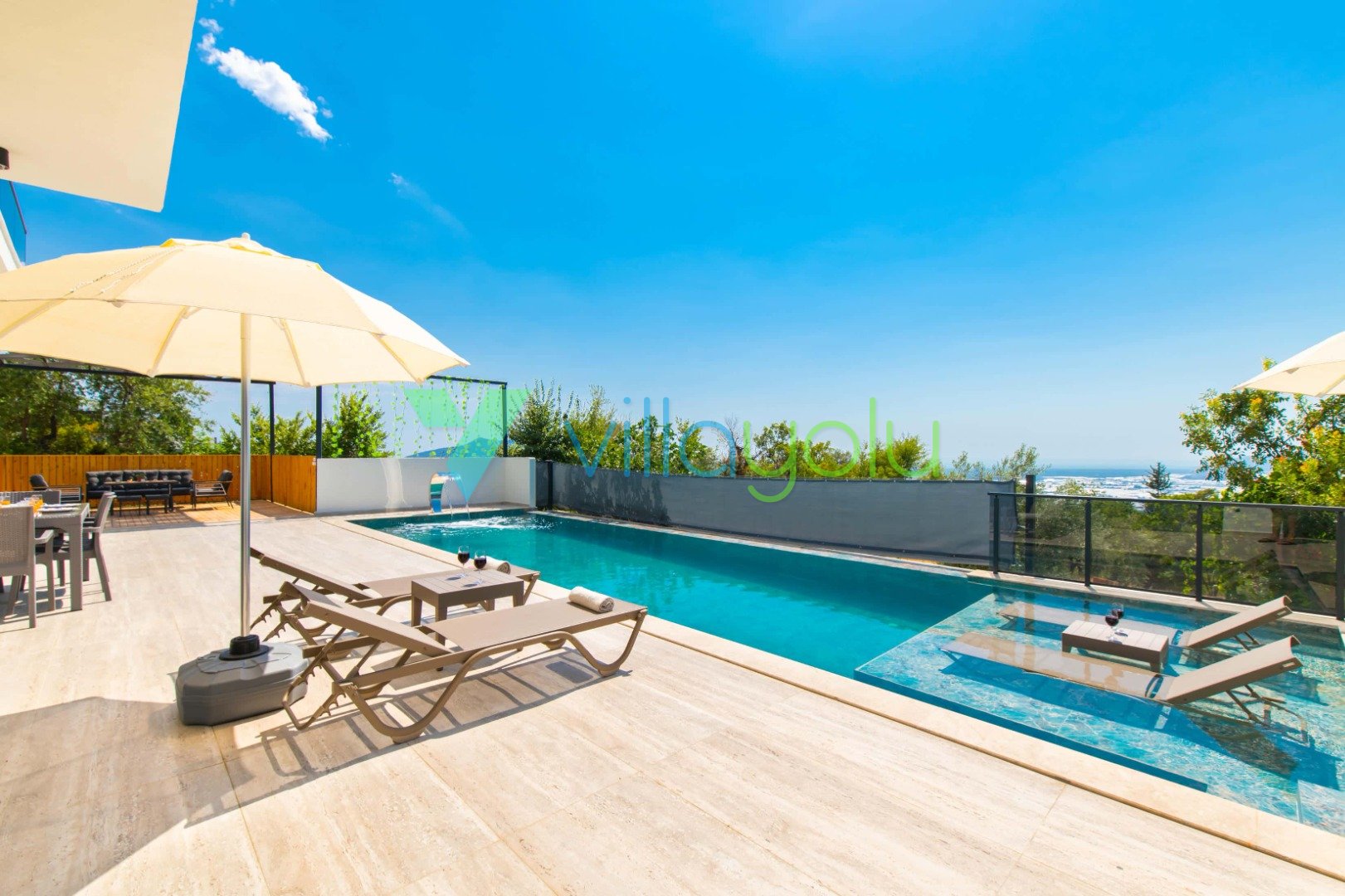 Muhafazakar ve Korunaklı Havuz Keyfi: Villamızın havuz terası dışarıdan görünmeyecek şekilde tasarlanmıştır. Bu sayede mahremiyetine önem veren muhafazakar aileler ve gözlerden uzak romantik bir tatil geçirmek isteyen balayı çiftleri için mükemmel bir seçenektir. 12.5 metre uzunluğundaki geniş yüzme havuzunda günün tadını çıkarabilir, sığ havuz bölümünde çocuklarınızla güvenle vakit geçirebilirsiniz.