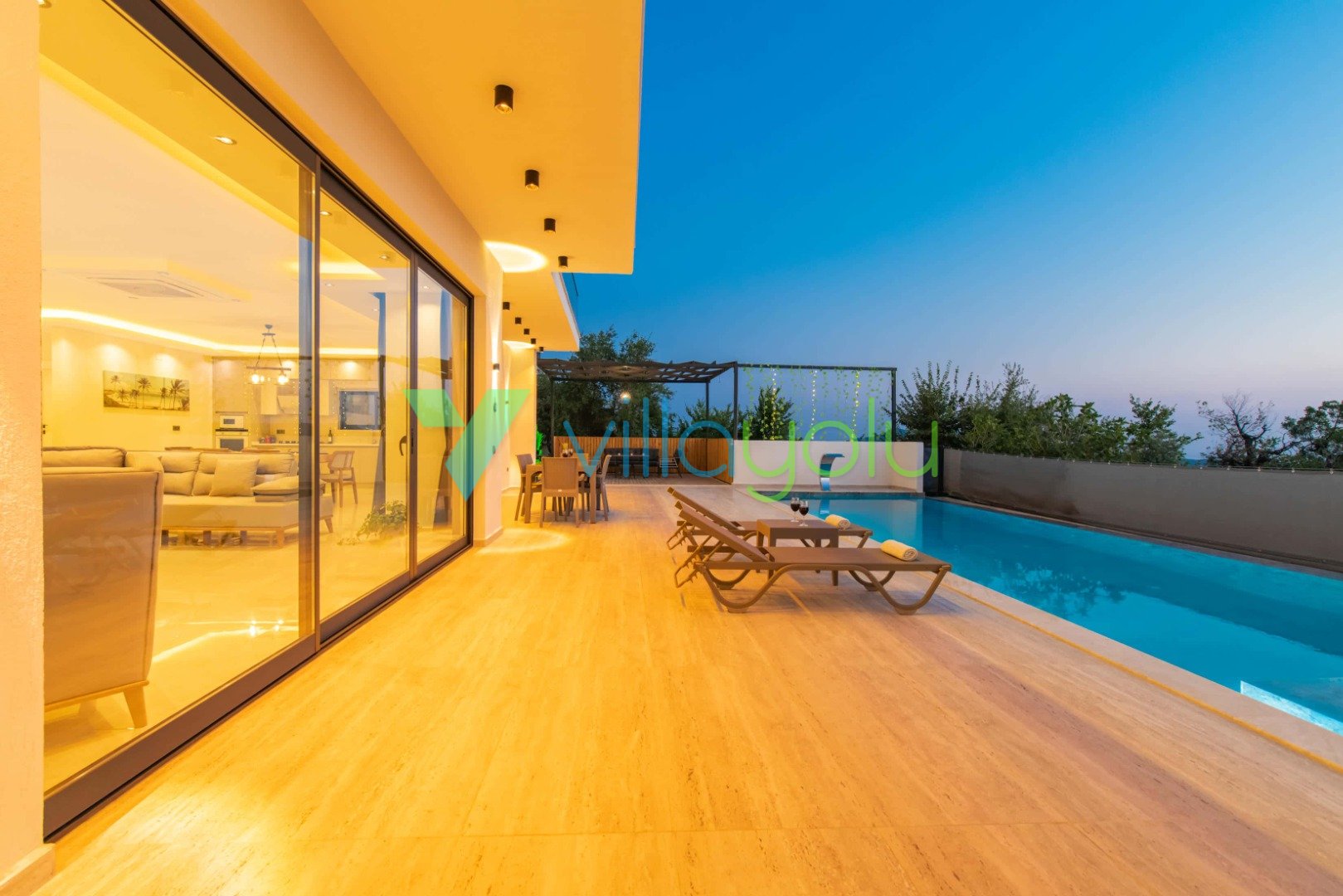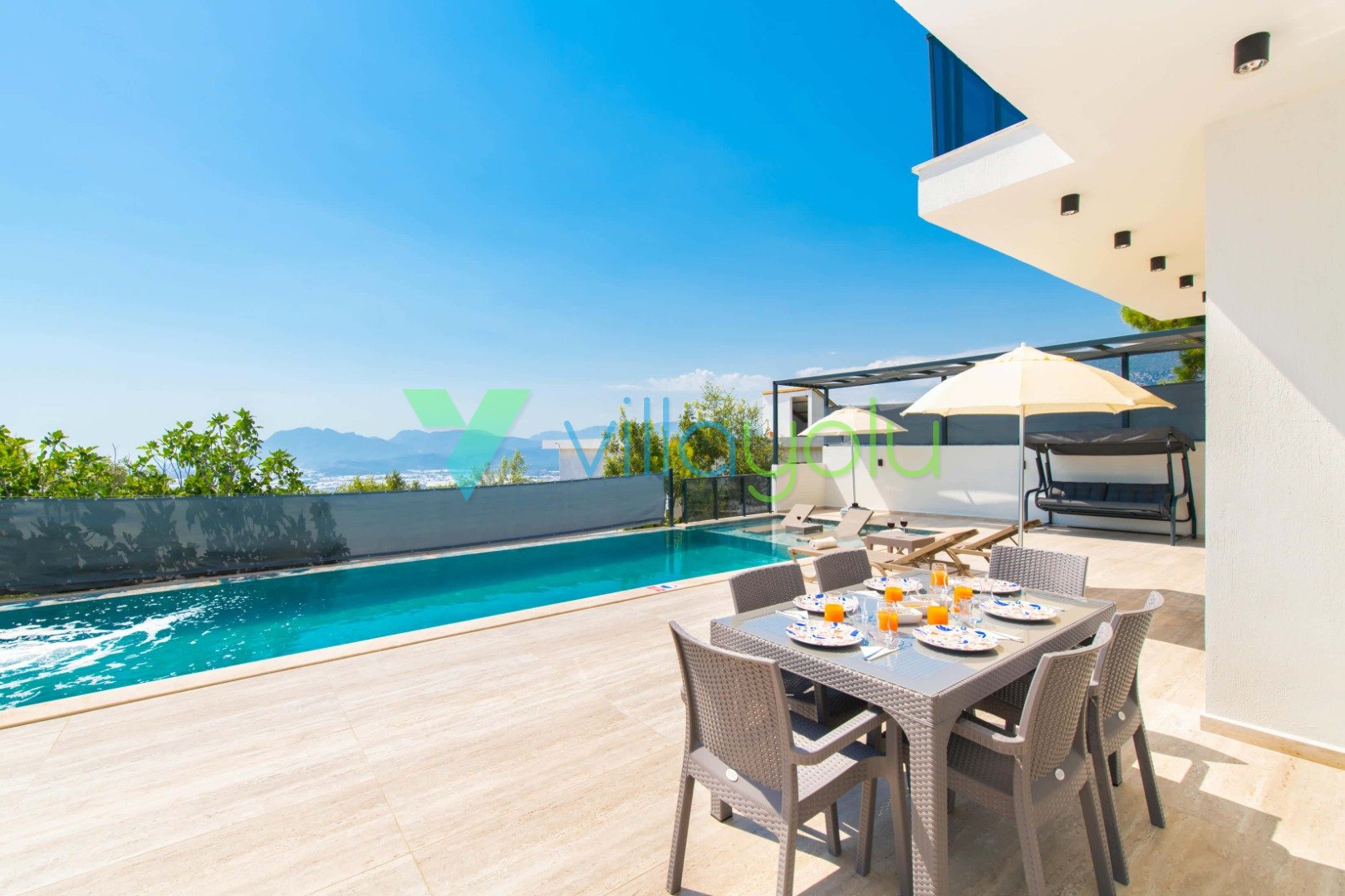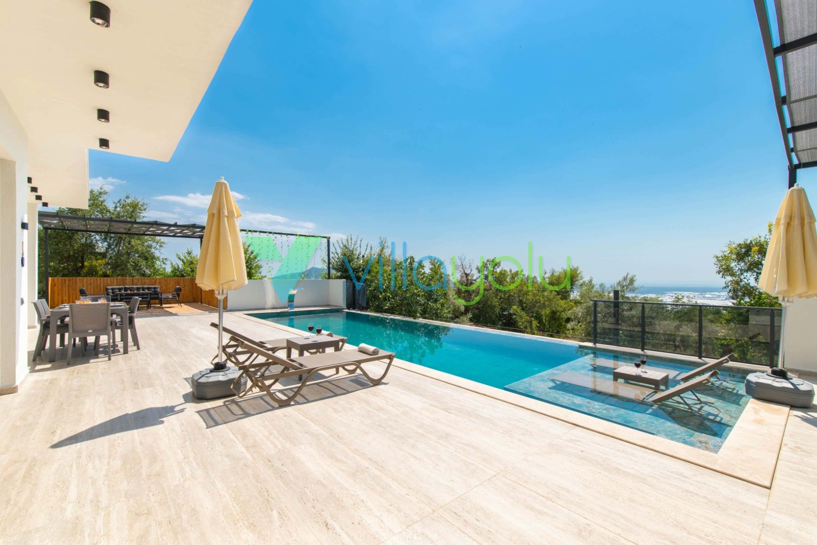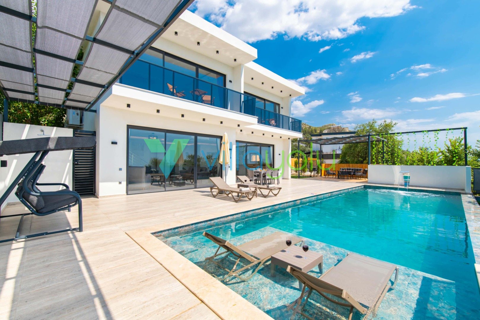 Muhafazakar ve Korunaklı Havuz Keyfi: Villamızın havuz terası dışarıdan görünmeyecek şekilde tasarlanmıştır. Bu sayede mahremiyetine önem veren muhafazakar aileler ve gözlerden uzak romantik bir tatil geçirmek isteyen balayı çiftleri için mükemmel bir seçenektir. 12.5 metre uzunluğundaki geniş yüzme havuzunda günün tadını çıkarabilir, sığ havuz bölümünde çocuklarınızla güvenle vakit geçirebilirsiniz.