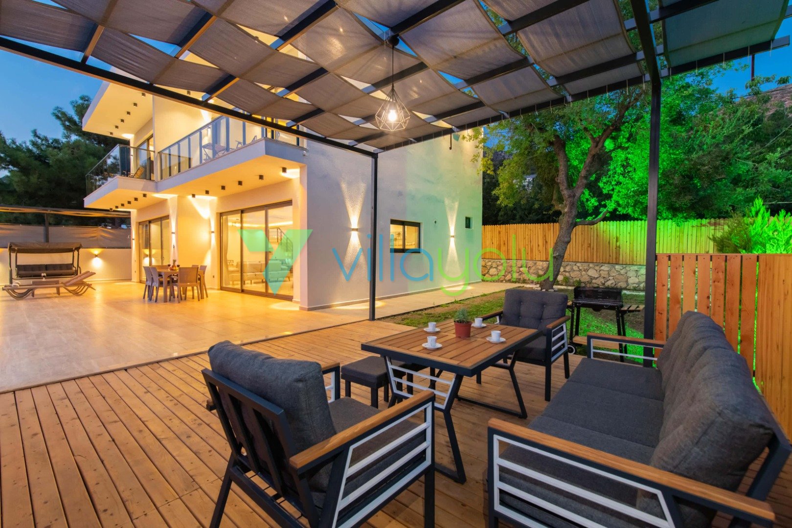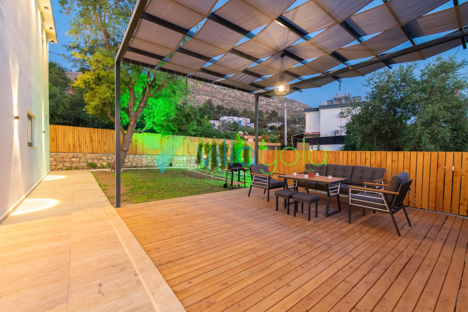 Bahçe Olanakları: Şezlonglar, Güneş Şemsiyesi, Bahçe Oturma Grubu, Salıncak, Barbekü/Mangal Alanı.