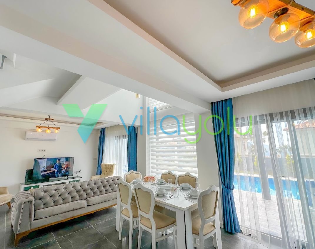 Villa Lazuli, Fethiye Ölüdeniz Ovacık mevkisinde 4 yatak odası 8 kişilik kapasiteli özel havuzlu tatil villasıdır.50m2 havuzun bulunduğu villamız geniş bahçe ve havuza sahiptir.2 adet çift kişilik 4 adet tekli yatağın bulunduğu evimiz modern mimariye sahiptir.Ölüdeniz plajına araçla 10dk mesafededir.