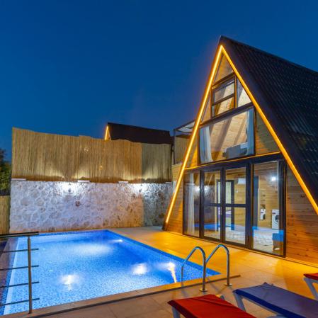 Bungalov Zübeyde-2, Kalkan Sarıbelen mevkisinde 2 yatak odası 4 kişi kapasiteli havuz alanı korunaklı doğa içerisinde bungalov. 3 adet aynı tip bungalov bulunmaktadır.
