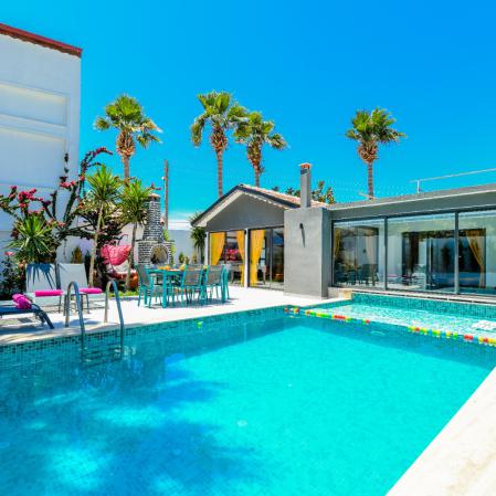 Mehmet Apt Suite 1, Kaş Patara'da Hamam sauna ve çocuk havuzlu 2 yatak odası 4 kişi kapasiteli muhafazakar tatil villasıdır.