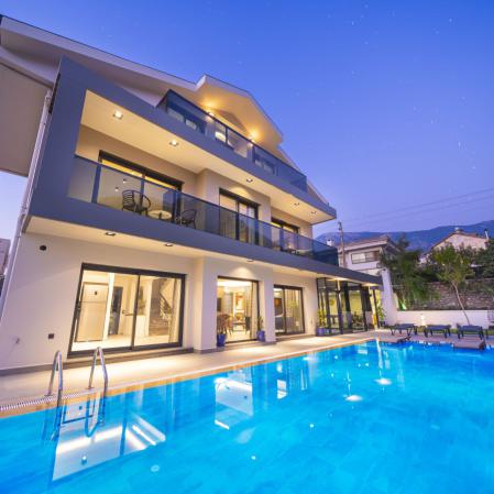 Fethiye-Ölüdeniz'in merkezi noktalarından Hisarönü'nde bulunan Villa Alavya, özel havuzlu lüks tatil villasıdır.Villamızda 2 katta 4 suit yatak odası bulunmaktadır.Her odanın kendine ait ebeveyn banyosu olan evimizde 8 kişi konaklayabilmektedir. 45m2 özel havuzu olan villamızda ayrıca 12 ay kiralamaya uygun 15m2 kapalı ısıtma havuzu bulunmaktadır.Villa Alavya 2021 yapımı son derece modern ve lüks bir dizayna sahip.Misafirlerimizin her türlü ihtiyacını karşılayabilecek olan villamızda eğlenceli vakit geçirmek için langırt,bilardo,sauna ve jakuzi bulunmaktadır.Dünyaca ünlü Ölüdeniz plajına 4km mesafede olan Villa Alavya yerli ve yabancı misafirlerimiz tarafından sıklıkla tercih edilen lüks villalarımızdandır.