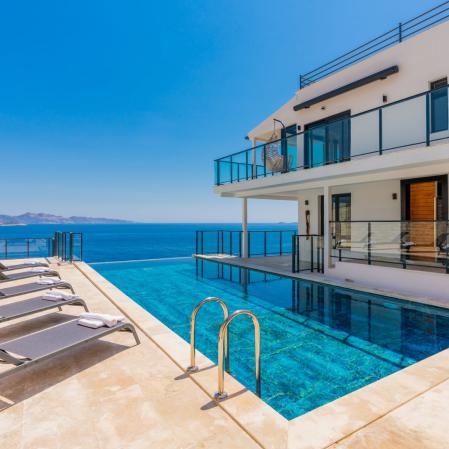 Sonsuzluk havuzlu villamızda havuzda yüzerken harika deniz manzarasının tadını çıkartabilirsiniz.
