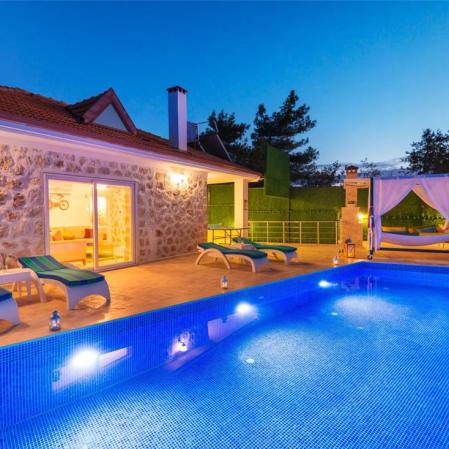 Kalkan İslamlar'da bulunan Villa Alya 2 yatak odası 4 kişi kapasiteli havuz alanı korunaklı tatil villasıdır.