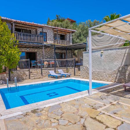 Villa Begonvil,Kalkan üzümlü'de 2 yatak odası 4 kişi kapasiteli havuz alanı korunaklı tatil villasıdır.Taş mimariye sahip villamız deniz manzarasına sahiptir.Çocuklu aileler için çocuk havuzu bulunmaktadır.