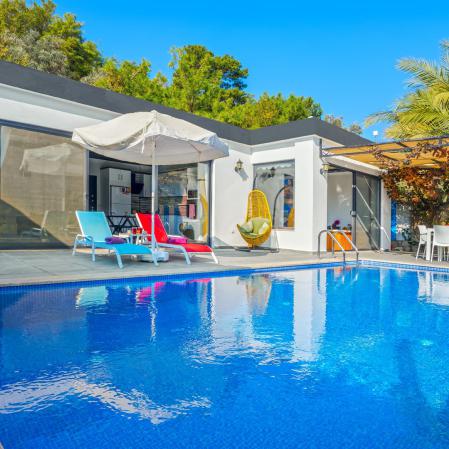 Villa Bozo-1, Kalkan İslamlar'da doğa içerisinde havuz alanı korunaklı jakuzili balayı villasıdır.