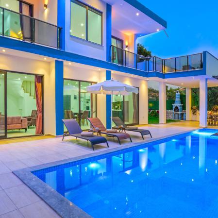 Villa Bozo-2 Kalkan İslamlar'da doğa içerisinde 2 yatak odası 5 kişi kapasiteli havuz alanı korunaklı tatil villasıdır.Geniş bahçesi oılan villamızın çocuklu aileler için çocuk havuzu olarak kullanılabilecek sığ havuz,çiftlerimzin için ana yatak odasında jakuzi bulunmaktadır.