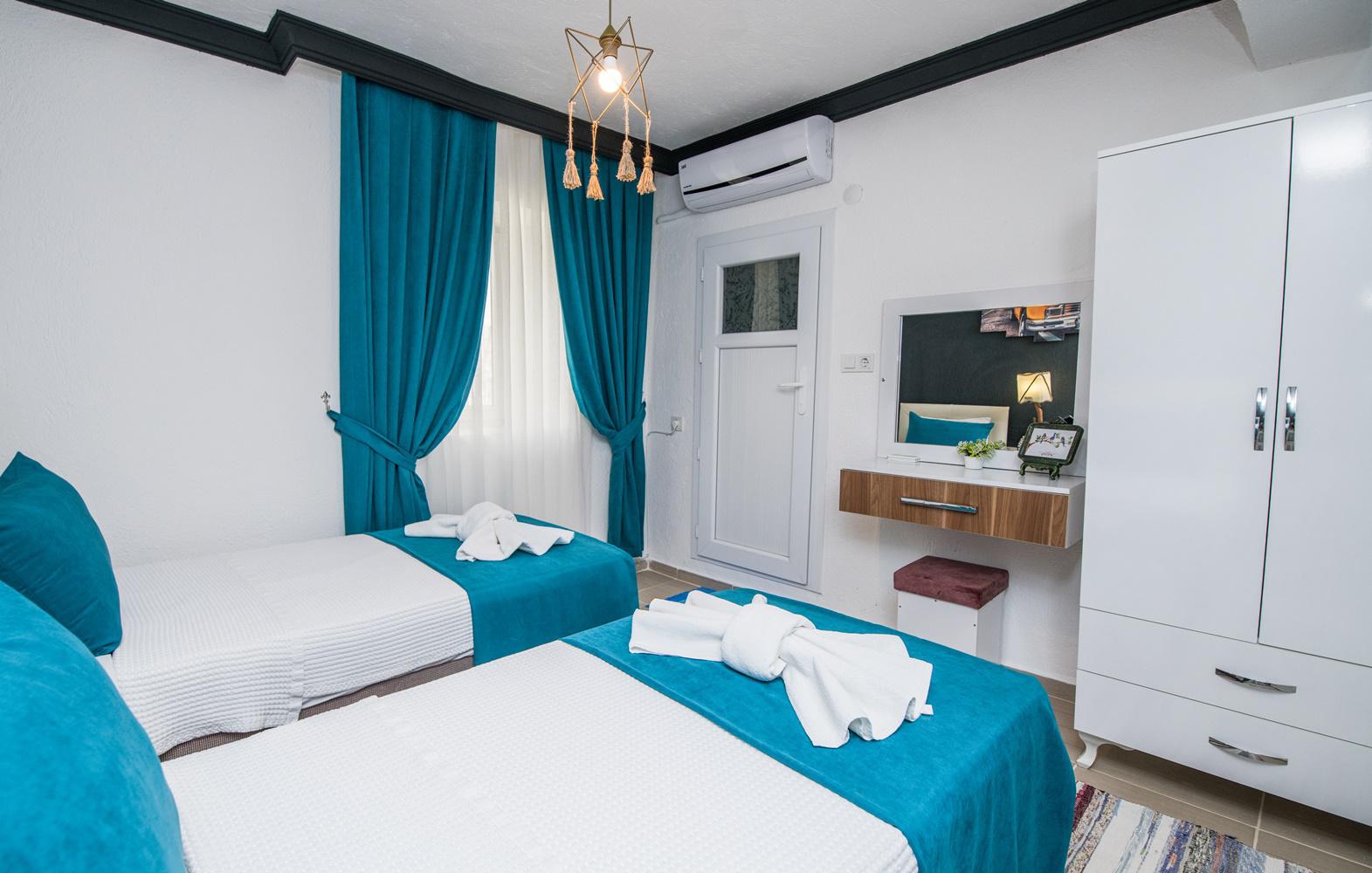 2. Yatak OdasıZemin Katta, Yatak Odası, 2 Tek Kişilik Yatak, Komodin, Elbise Dolabı, Banyo/WC, Klima