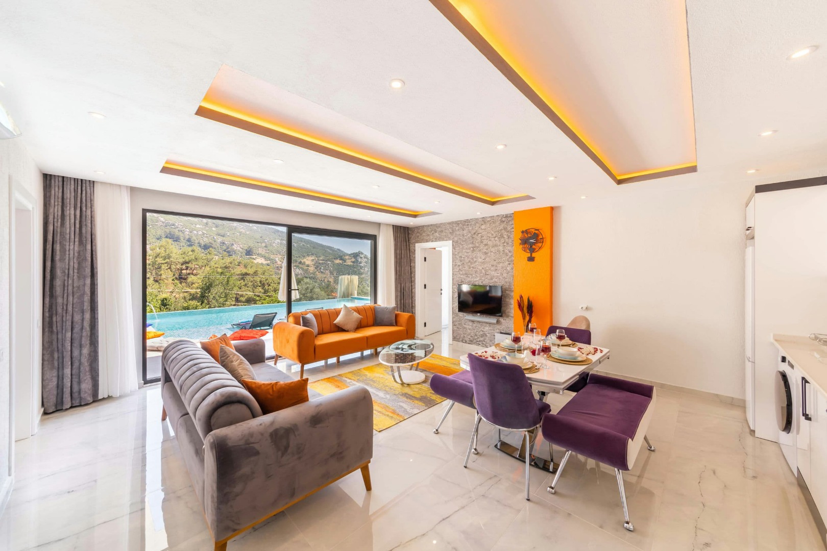 Villa DK,Kalkan İslamlar'da 2022 yapımı havuz alanı korunaklı 2 yatak odası 4 kişi kapasiteli tatil villasıdır.Çocuklu aileler için çocuk havuzu olarak kullanılabilecek sığ havuz,jakuzi ve bahçede eğlenceli vakitler için salıncak ve langırt bulunmaktadır.
