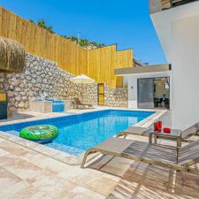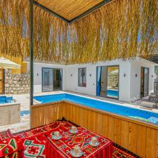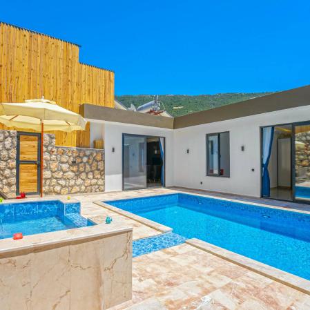 5Kalkan İslamlar'da doğa ile iç içe villamız 2 yatak odası - 5 kişilik kapasitesi vardır.Villamız çekirdek aileler ve balayı çiftleri için idealdir.Yatak odasında tuz odası,sauna ve jakuzisi bulunmaktadır.Çocuklu aileler için çocuk havuzu da bulunmaktadır.Birlikte villa kiralamak isteyen müşterilerimiz için Villa Dimare ve Dimare-2 villamızın hemen yakınındadır.