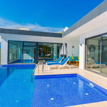 Villa Elif,Kalkan Üzümlü'de tek yatak odası 2 kişilik konaklama kapasitesine sahip havuz alanı korunaklı tatil villasıdır.