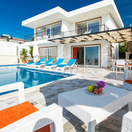 Villa Eslem, Kalkan Üzümlü'de dünyaca ünlü patara plajı manzaralı tatil villasıdır.3 yatak odası 5 kişi kapasitelidir.Havuzu korunaklı ve çocuk havuzu ile muhafazakar aileler için uygun bir seçenektir.