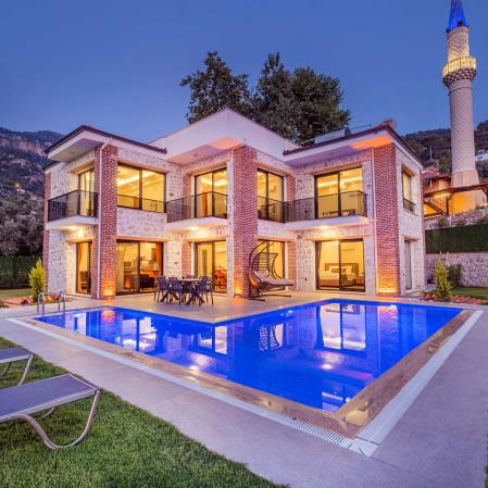 Villa Esma Sultan Fethiye Ölüdeniz'e yarım saat uzaklıktaki Kelebekler Vadisi'nin üst kısmında yer alan Faralya mevkisinde yer almaktadır.4 yatak odası 8 kişilik kapasitesi ile geniş aile ve gruplara uygun bir villadır.2 yatak odasında jakuzi bulunmaktadır.Geniş bir bahçesi ve oldukça geniş L şeklinde bir havuzu vardır.Harika deniz manzarasına sahip villamız 2022 yapımı olup oldukça modern ve lüks bir dizayna sahiptir.En yakın plaj Kabak Koyu 2km mesafededir.Ölüdeniz 25dk uzaklıktadır.