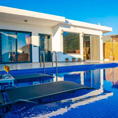 Villa Fener,Kalkan İslamlar'da 2 yatak odası - 4 kişi kapasiteli harika doğa ve deniz manzaralı havuzu korunaklı tatil villasıdır.