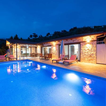 Villa Fesleğen,Kalkan Üzümlü mevkisinde 2 yatak odası 4 kişi kapasiteli havuz alanı korunaklı tatil villasıdır.Ana yatak odasında çift kişilik jakuzi bulunan villamız Kalkan'a özgü taş mimariye sahiptir.