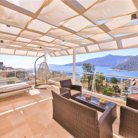 Villa Golden Lotus, Kalkan Kalamar mevkisinde 3 yatak odası 6 kişilik kapasiteli Kalamar'daki plajlara yürüme mesafesinde ve deniz manzaralı özel havuzlu tatil villasıdır.