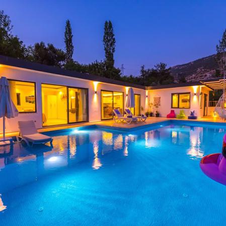 Villa Gül,Kalkan İslamlar'da havuz alanı korunaklı,doğa manzaralı villamız 2 yatak odalı olup 4 kişilik konaklama kapasitesine sahiptir. Yeşillikler içersinde bulunan villamız, şehir hayatının gürültülü atmosferinden biraz uzakta tatili tercih edenler için harika bir seçenek.Ana yatak odasında çift kişilik jakuzi bulunmaktadır.Havuza entegre çocuk havuzu ile çocuklu aileler içinde idealdir.