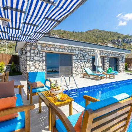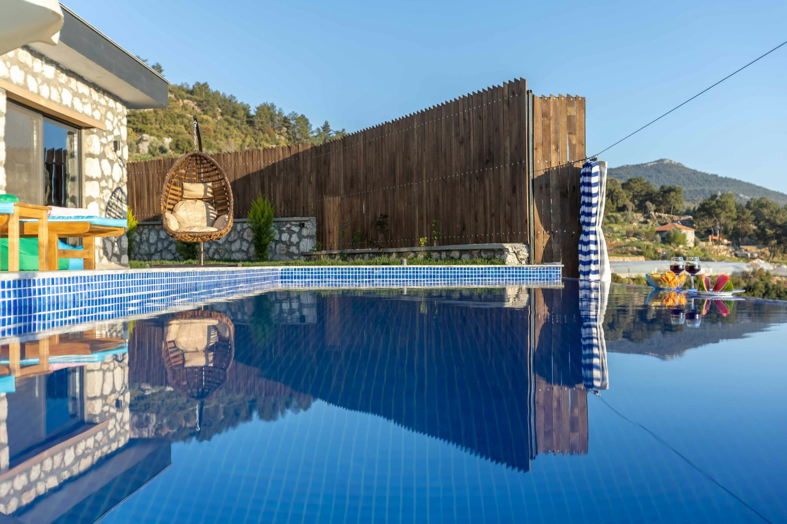 Kalkan Çavdır- Aklar mevkisinde bulunan Villa Günbatımı, havuz alanı korunaklı,doğa manzaralı balayı villasıdır.Taş mimariye sahip villamız konum itibariyle sessiz sakin bir konumda yer almaktadır.Tek yatak odası bulunan evimiz balayı çiftleri ve çekirdek aileler için uygun bir seçenektir.Villamız Kalkan merkeze 27km mesafededir.