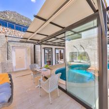 5Villa Gusto 6,Kalkan Kördere'de tek yatak odalı 2 kişi kapasiteli deniz manzaralı,havuz alanı korunaklı tatil villasıdır.Villa balayı çiftleri ve çekirdek aileler için uygun olup ana yatak odasında çift kişilik jakuzi bulunmaktadır.Villamızın hemen yanında aynı tip villalardan 5 adet daha bulunmaktadır.Birlikte villa kiralamak isteyenler için uygundur.Kalkan merkeze 3,5 km,en yakın plaj ise 4 km mesafededir.