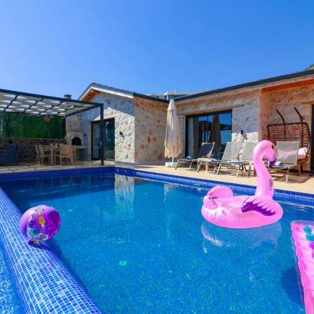 Villa Jungle,Kalkan Akbel'de 2 yatak odası 4 kişi kapasiteli havuz alanı korunaklı tatil villasıdır.Villamız Kalkan'a özgü taşlardan yapılmış, modern bir mimariye sahiptir.Konum itibariyle Akbel'den Kalkan'ın kısmi deniz ve doğa manzarasına sahip bir villadır.Villamızın ana yatak odasında çift kişilik jakuzi bulunmaktadır.Havuza entegre geniş bir çocuk havuzu(sığ havuz) bulunmaktadır.