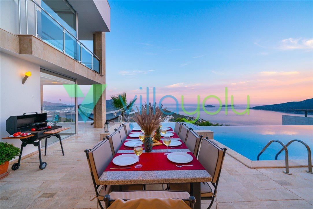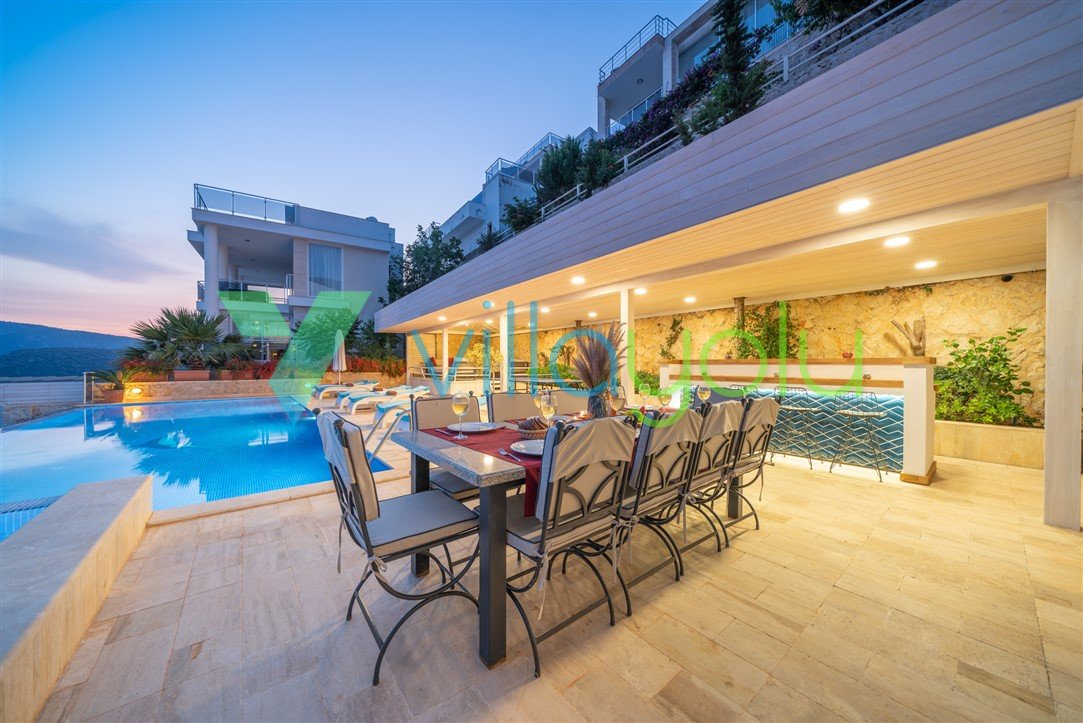 Villa Kayra Kalkan Kalamar mevkisinde sonsuzluk havuzu ve geniş yaşam alanı,modern dizaynı ve konforlu odaları ile sizlere eşsiz bir tatil deneyimi sunmaktadır.Tamamı deniz manzaralı 5 yatak odası ve 10 kişi kapasiteli Villa Kayra kalabalık aileler ve arkadaş grupları için uygun bir villadır.