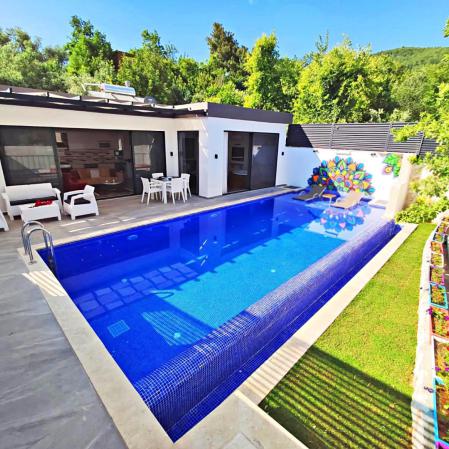 Villa Lantana,Kalkan Üzümlü'de tek yatak odalı 2 kişi kapasiteli havuz alanı korunaklı tatil villasıdır.Villamız doğa içerisinde modern mimariye sahiptir.40 m2 havuzu ve ana yatak odasında çift kişilik jakuzisi bulunmaktadır.