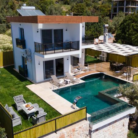 Villa Marine Luxury,Kaş Gökseki mevkisinde 2023 yapımı 3 yatak odası 6 kişi kapasiteli deniz manzaralı tatil villasıdır.Modern ve lüks tasarıma sahip villamız dubleks mimariye sahip,ana yatak odasında jakuzi bulunan 3 odasıda çift kişilik yataklı tatil villasıdır.Kaş merkeze 4 km,en yakın plaja sadece 1 km mesafededir.