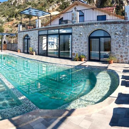 Villa Metehan Kalkan Akbel mevkisinde bulunan 3 yatak odası 6 kişilik konaklama kapasitesine sahip villalarımızdandır. Tamamen korunaklı olması ve havuzunun gerçek deniz taşlarından oluşması farklı bir tasarıma sahiptir.