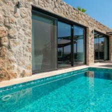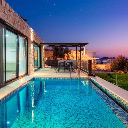 Villa Nana.Kalkan Kömürlük mevkisinde sıradışı mimari tasarımlı,panoramik deniz manzaralı,denize yakın konumda ısıtmalı havuzlu lüks balayı villasıdır.
