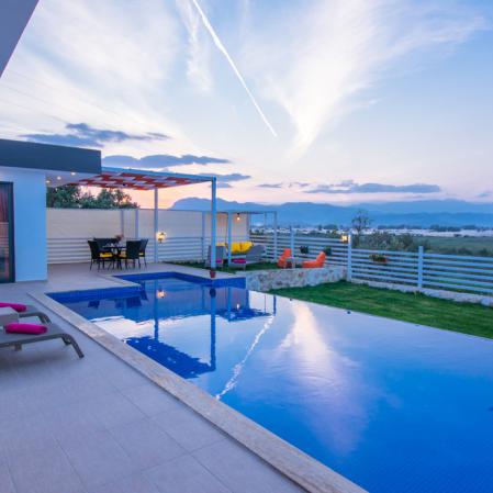 Villa Nar Çiçeği, Kalkan Patara'da 2 yatak odalı 4 kişi kapasiteli olan havuz alanı korunaklı villamızdır.Villamızın açık ve kapalı ısıtmalı havuzu bulunmaktadır.Yatak odasında jakuzi bulunan villamız balayı çiftleri için idealdir.Aynı zamanda çocuklu aileler için çocuk havuzu bulunmaktadır.