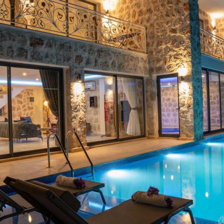 Villa Narin-4 Kalkan islamlar'da 10 adet taş villadan oluşan site içerisinde 4 yatak odası 8 kişi kapasiteli havuz alanı korunaklı tatil villasıdır.Villamız site içerisinde doğa ile iç içe bir konumda bulunmaktadır.Kapalı ısıtma havuzu bulunan villamız yılın 12 ayı aktiftir.Ana yatak odasında jakuzi bulunmakta ve uzaktan deniz manzaralıdır.Son derece modern ve lüks tasarıma sahip villamız Kalkan'a özgü taş mimariye sahiptir.
