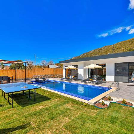 Villa Nazeren, Kalkan Hacıoğlan'da 2023 yapımı 3 yatak odası 6 kişi kapasiteli havuz alanı korunaklı lüks tatil villasıdır. Doğa içerisinde modern ve lüks bir tasarıma sahip evimizin bahçesinde masa tenisi,hamak,tek kişilik salıncak,minyatür kaleler ve ayrıca küçük çocuklar için çocuk havuzu olarak kullanılabilecek sığ havuz,salıncak ve kaydırak seçenekleri ile çocuklu aileler için harika bir seçim.Kaliteli eşyalarla döşenen evimizin geniş havuz terası ve bahçesi bulunmaktadır.Evinizin konforunu aratmayacak şekilde döşenen villamızda 2 çift kişilik yatak 2 tek kişilik yatak bulunmaktadır.Geniş aileler için uygun bir seçenektir.Kalkan merkeze 18 km mesafededir.
