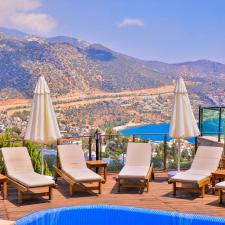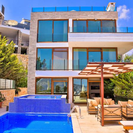 Kalkan merkez kısmı Ortaalan mevkisinde bulunan Villa Panaroma, 5 yatak odası 9 kişi kapasiteli harika deniz manzaralı lüks tatil villasıdır.Modern mimariye sahip ve kaliteli eşyalarla döşenmiş konforlu bir seçenektir.