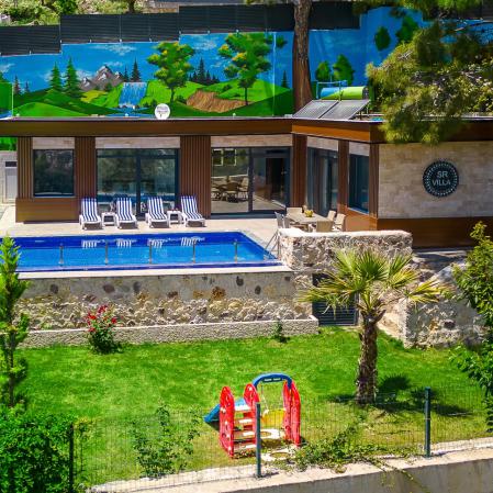 Villa SR 2,Kalkan İslamlar'da 2022 yapımı 2 yatak odası 4 kişi kapasiteli havuz alanı korunaklı lüks ve modern tatil villasıdır.Çocuk havuzu ve her 2 odasında da jakuzi bulunmaktadır.Villamızın hemen yanında Villa SR 1 ve Villa SR 3 bulunmaktadır.Birlikte villa kiralamak isteyen aileler için uygundur.Villamızda yazın elektrik kesintilerine karşı jenaratör bulunmaktadır.