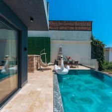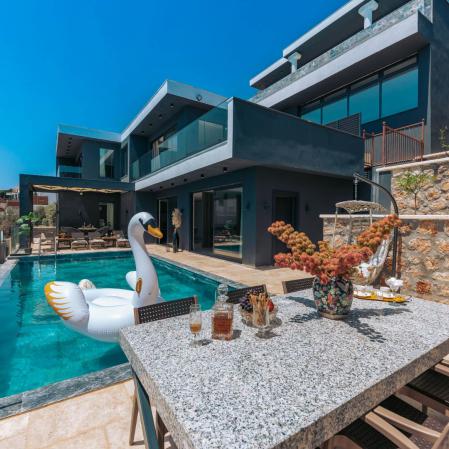 Villa Saba,Kalkan merkeze yakın noktalarından Kördere mevkisinde 2024 yapımı 3 yatak odası 6 kişi kapasili özel havuzlu lüks tatil villasıdır.Şehir ve deniz manzarasına sahip evimiz son derece modern bir mimariye sahip olup üst kalite eşyalarla döşenmiştir.En üst kattaki suit odamızın terasında çift kişilik jakuzi ve giriş katta sauna bulunmaktadır.Modern ve şık tasarıma villamızın yanında Villa Zek bulunmaktadır.