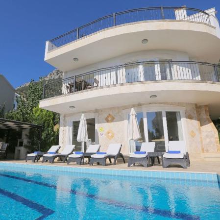 Villa Sarnıç, Kalkan Kızıltaş mevkisinde 3 yatak odası - 6 kişilik kapasiteli deniz manzaralı villadır.Çekirdek ve geniş aileler için ideal olup ebeveyn yatak odasında bulunan jakuzisi ile balayı çiftlerine de hitap etmektedir.