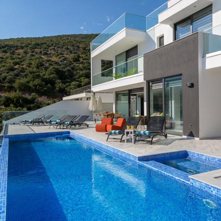 Villa Seascape, Kalkan Kalamar mevkisinde 4 yatak odası 8 kişi kapasiteli sonsuzluk havuzlu lüks villadır.Villamız Kalamar'daki plajlara 500mt mesafededir.Yatak odasında çift kişilik jakuzi,havuza entegre çocuk havuzu ve eğlenceli vakit geçirmek için bahçede masa tenisi bulunmaktadır.Son derece lüks ve modern tasarıma sahip villamız Kalkan'da liman,cafeler,restaurantlar ve marketlere çok yakın konumda bulunmaktadır.